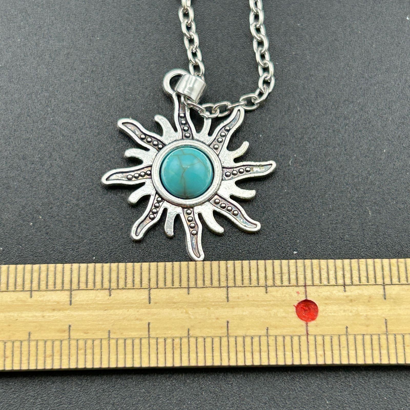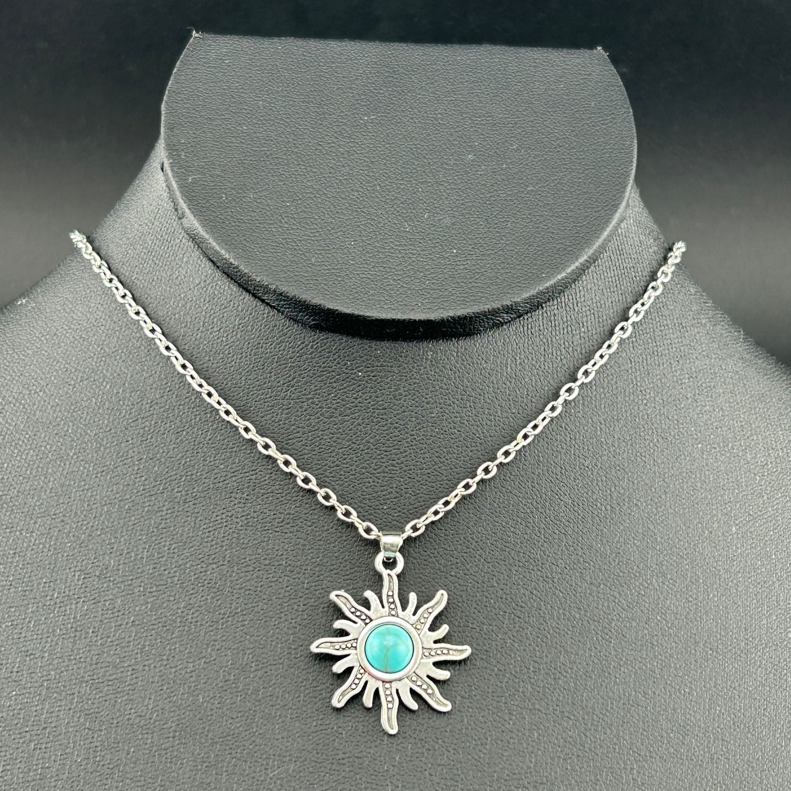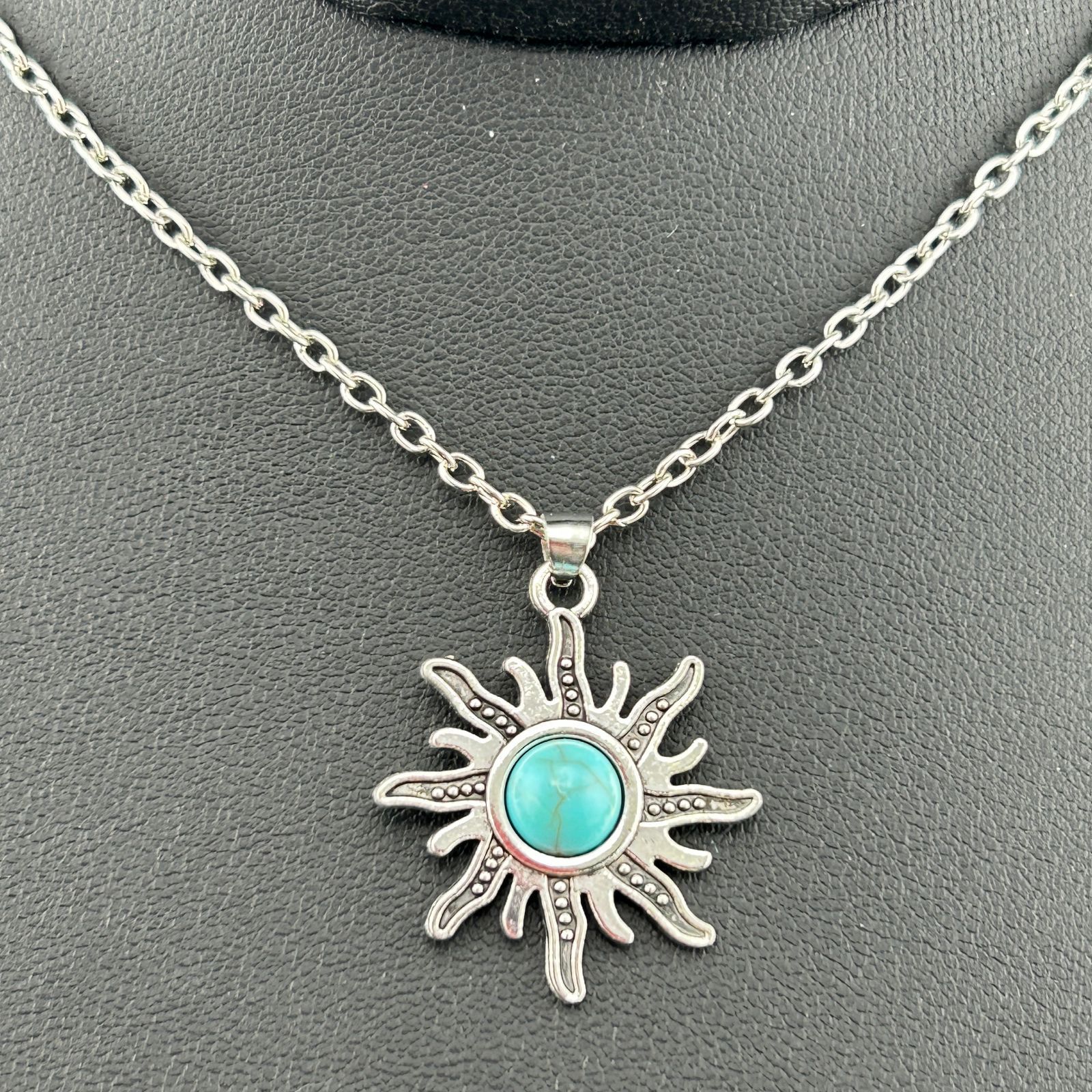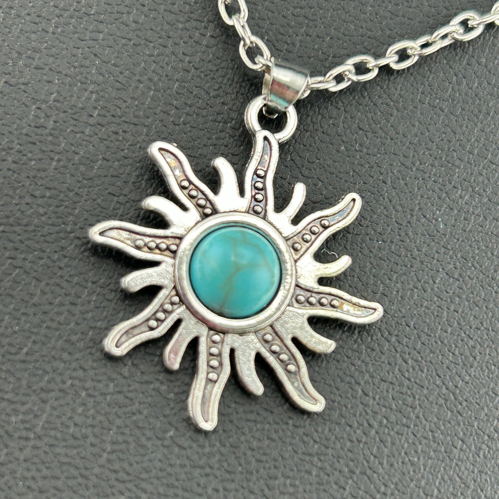 【新品】アクセサリー ネックレス ターコイズ 太陽 ヴィンテージアクセサリー シルバー カラー◆