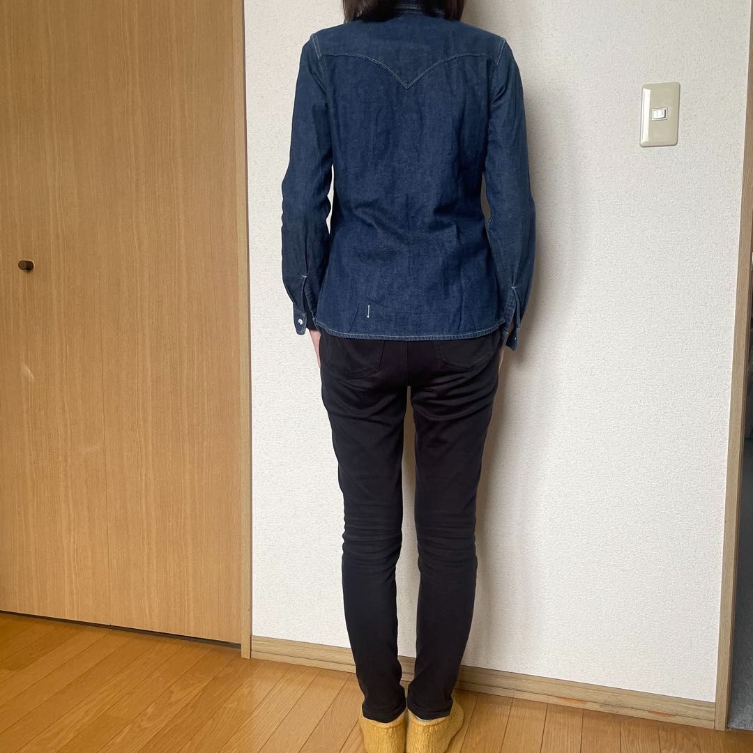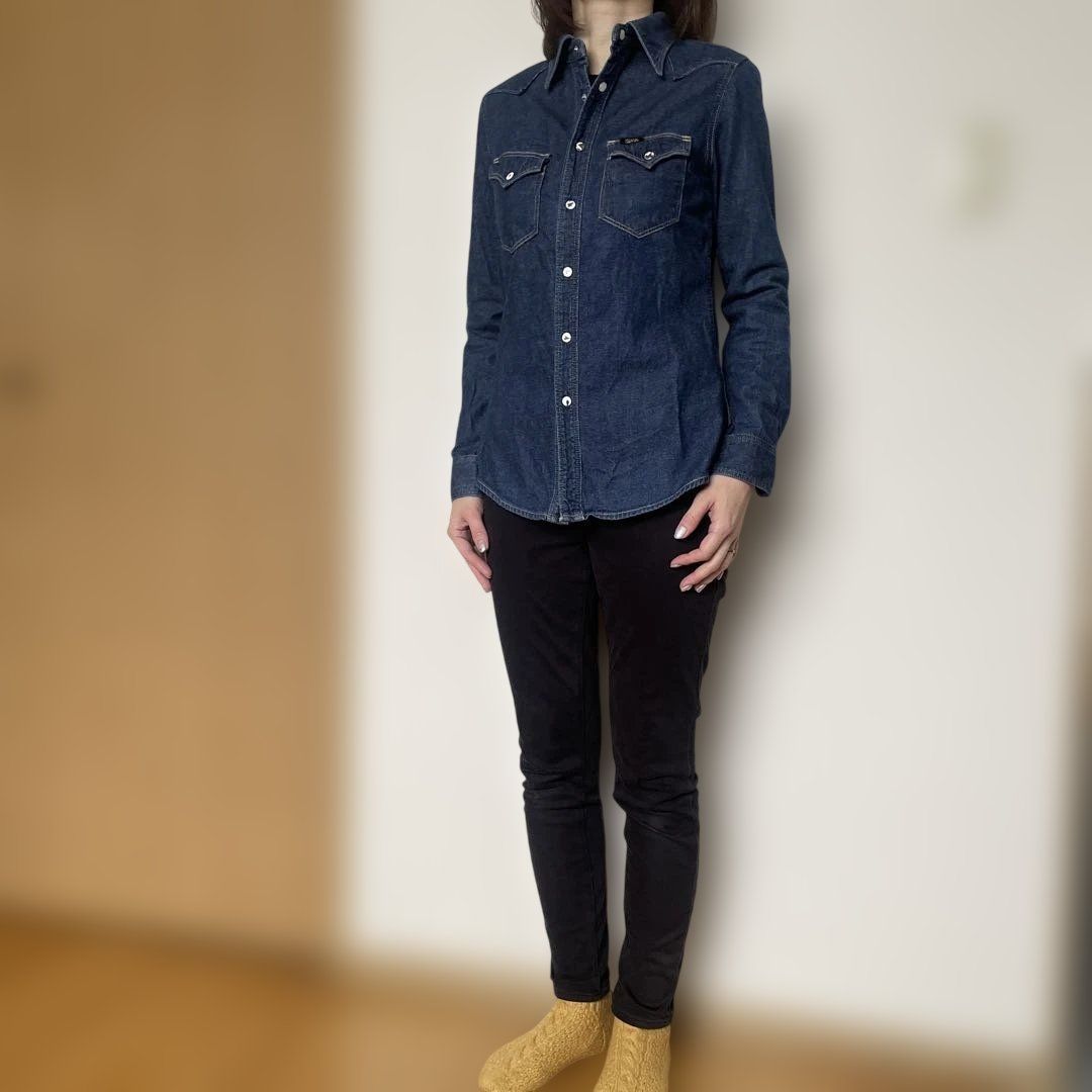 色落ち感少なく、濃紺の状態で、目立った汚れや痛みはありません。