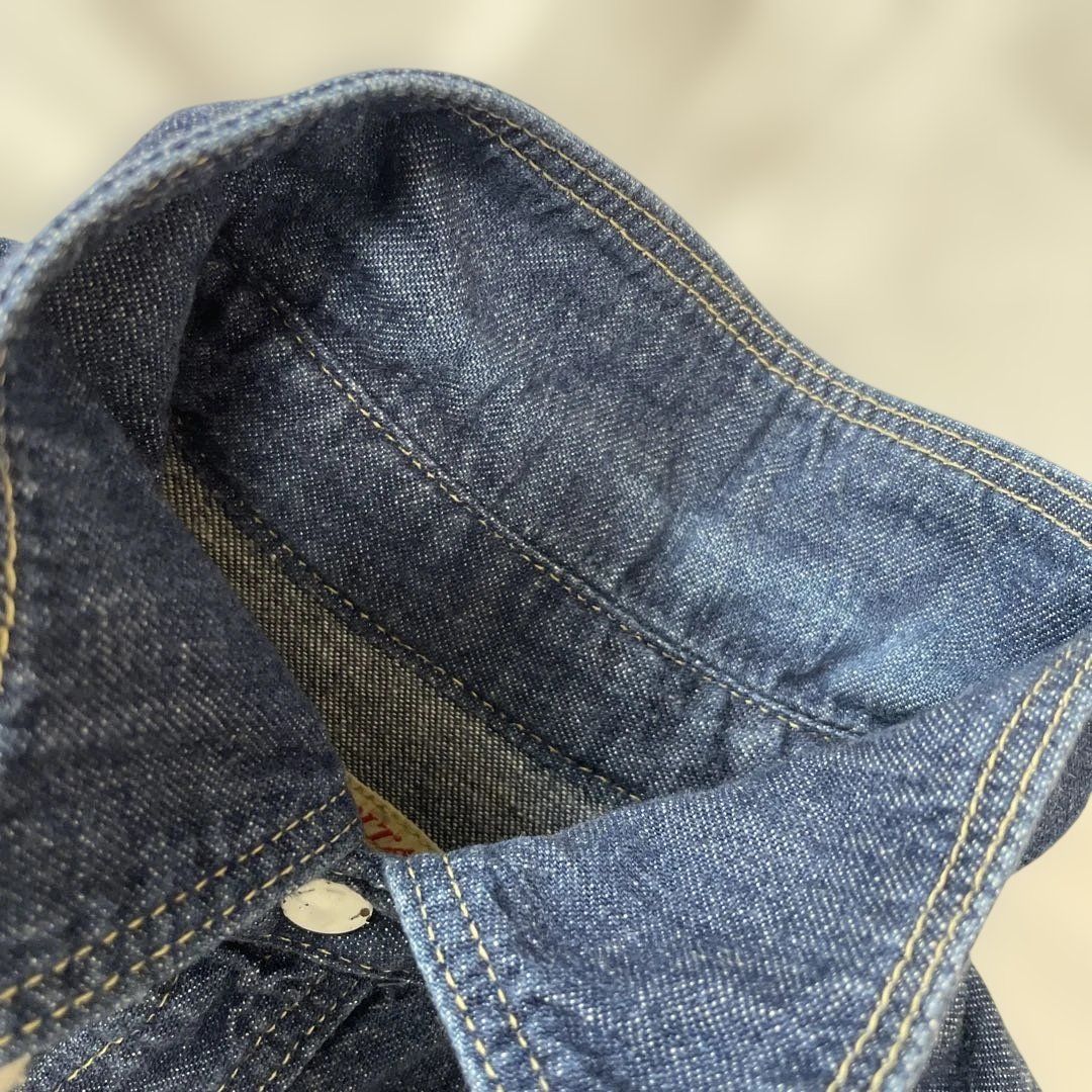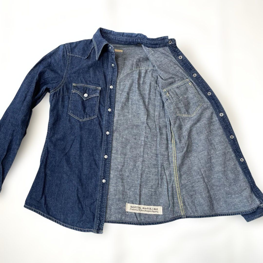 ボタンの白塗料がスレ剥がれありますが、KAPITAL得意のダメージ加工/エイジング加工によるものと思われます。