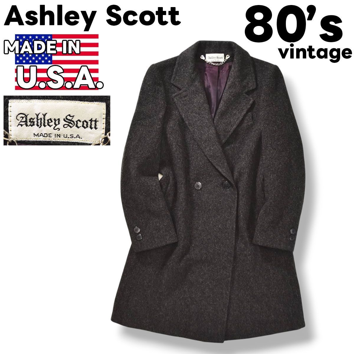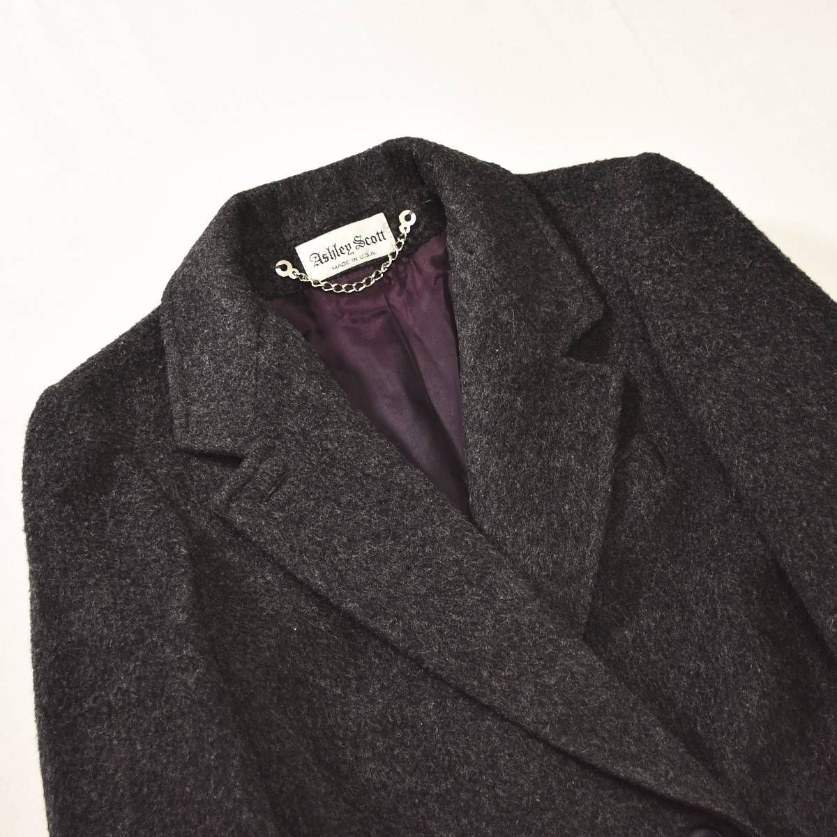 【希少】 80sヴィンテージ USA製 アシュレイスコット Ashley Scott ピュアウール ダブルブレスト チェスターコート オーバーコート アウター クラシック トラッド アメトラ プレッピー グレー レディース ♪