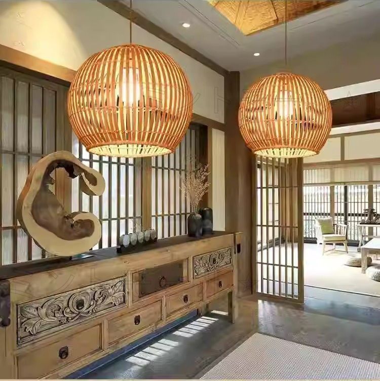 DIY ペンダントライト 北欧 LED対応 竹編み ボール型 レトロ アンティーク インテリア照明 ダイニング キッチン リビング 寝室 和室 おしゃ