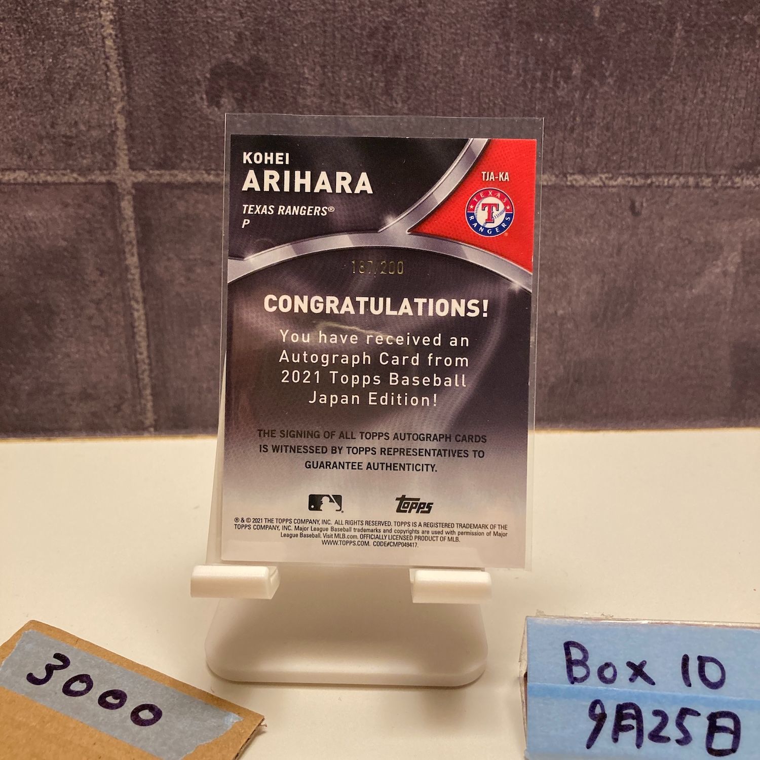 2021 Topps Japan Edition Kohei Arihara 有原航平 187/200 サイン Texas Rangers RC ルーキー Rookie カード