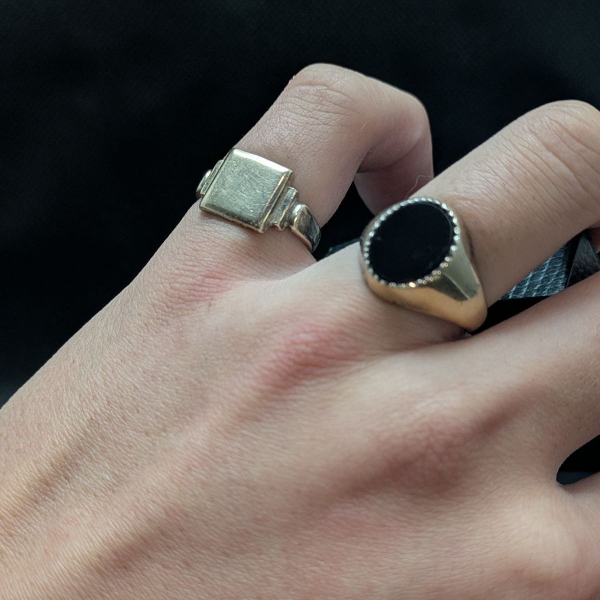 #yukiアクセサリー __ 英国ヴィンテージの趣を感じる、9カラットゴールド張り(9CT GOLD ON SILVER) のシグネットリングです。 スターリングシルバーをベースに、表面には9金の層を施したクラシックな構造。 程よい厚みと重みがあり、シンプルながらも確かな存在感を放ちます。 スクエアフェイスのデザインは、イニシャル刻印用にも人気の高いスタイルです。 ※リングケースは付属対象外となります。 ●サイズ 日本サイズ 約12.7号 重量 約4.5g ●素材 9CTゴールド張り(ゴールドオンシルバー) スターリングシルバー(ベース) 【コンディション】 経年に伴う小傷や僅かな擦れがございますが、刻印も明瞭に残っており、ヴィンテージとして非常に良好な状態です。 ●管理番号 C4312511 英国らしい端正な造形と、金張り特有の柔らかな輝きが魅力のヴィンテージジュエリー。男女問わず、クラシックな装いに映える逸品です。 メンズ、レディース、ユニセックス