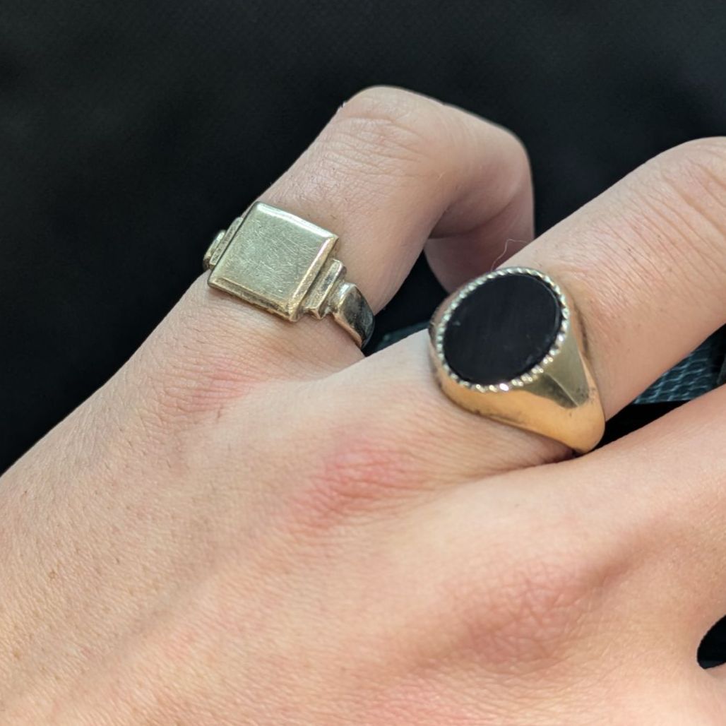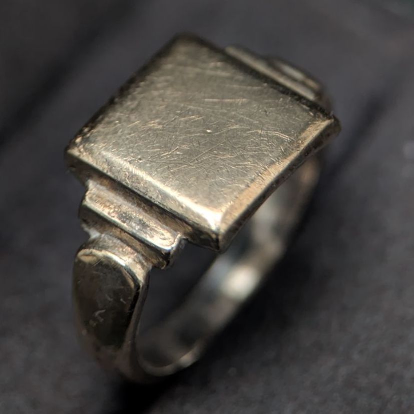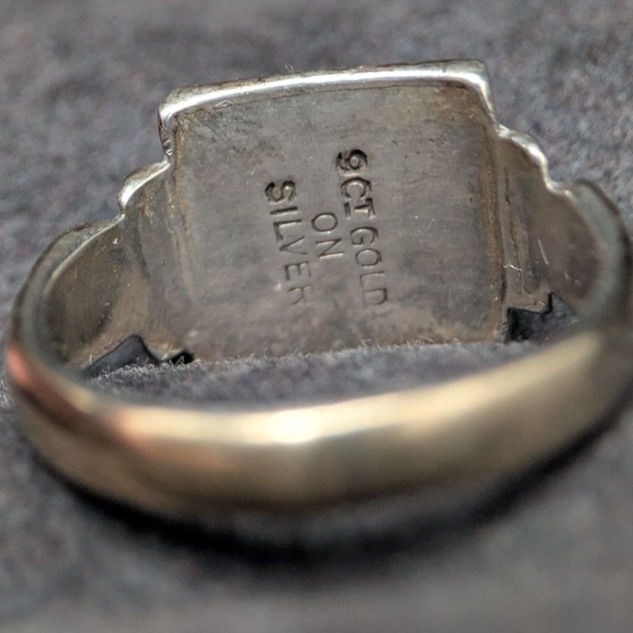英国製 9金張りスターリングシルバー シグネットリング 12.7号 4g ヴィンテージ 9CT刻印 イギリス 9K スクエアリング