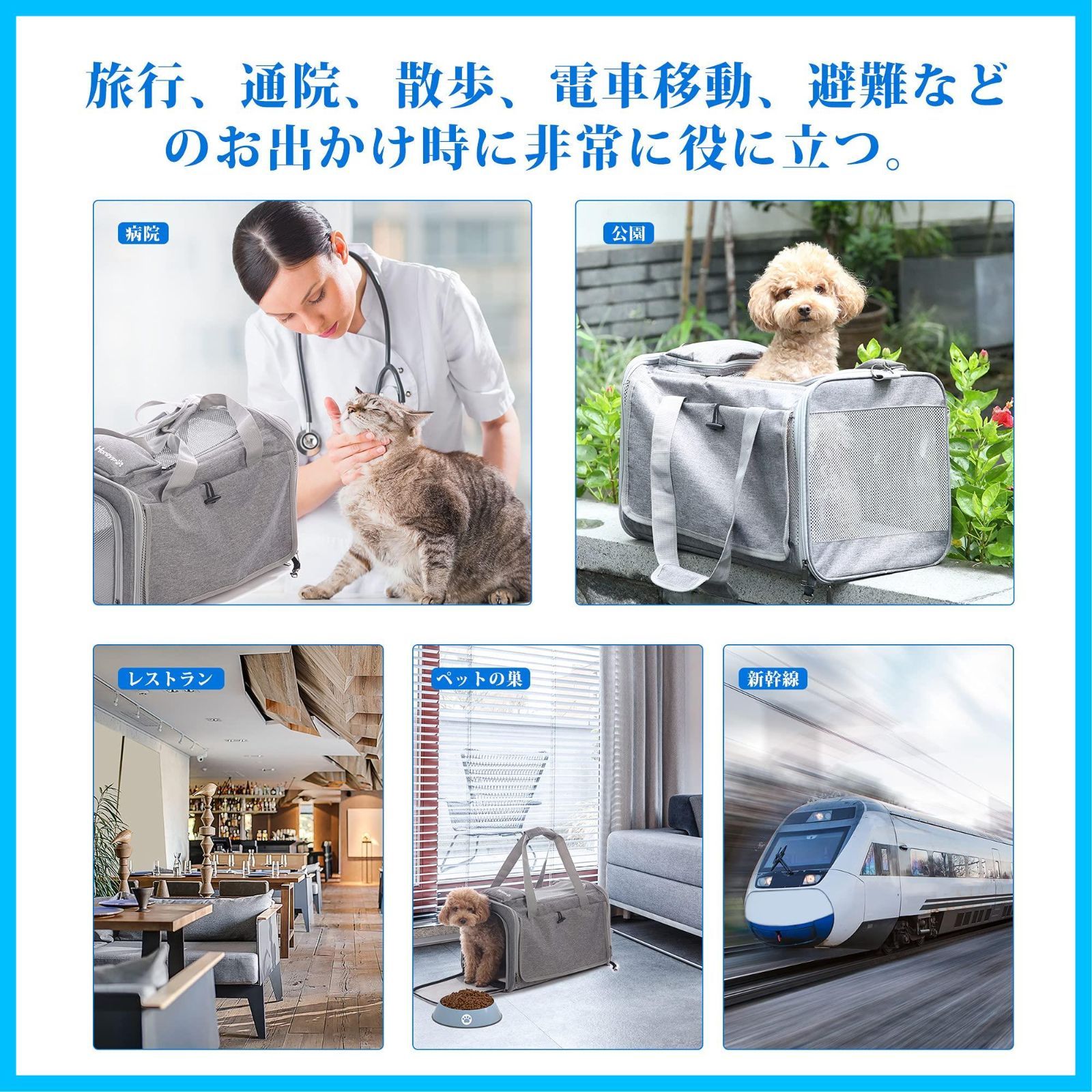 【快適、便利】 長さを調節できる肩ベルト、幅の広い肩パッド、厚みのある手提げパッドがありますので、重いペットを連れてもストレスを軽減できます。4つの使い方: ショルダー、手提げ、カバンを体の前に斜めにかける、車載。散歩、買い物、レストラン、通院、電車移動、避難などのお出かけ時に非常に役立ちます。家にいる時は、ペットの好きな巣です。