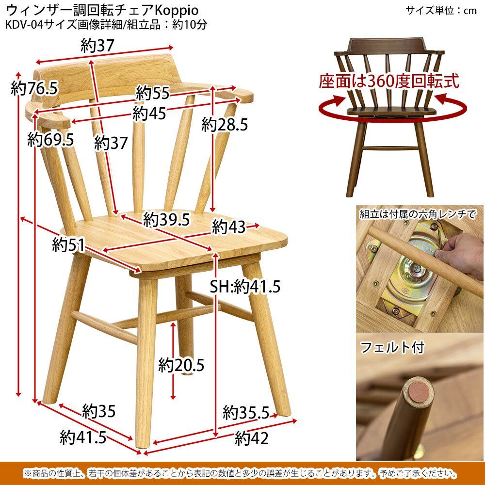 椅子 チェア 回転椅子 回転いす 木製 ダイニングチェア ウィンザー調 ブラウン 茶 ダイニング ダイニング家具 家具 キッチン キッチン家具 ヴィンテージ アンティーク