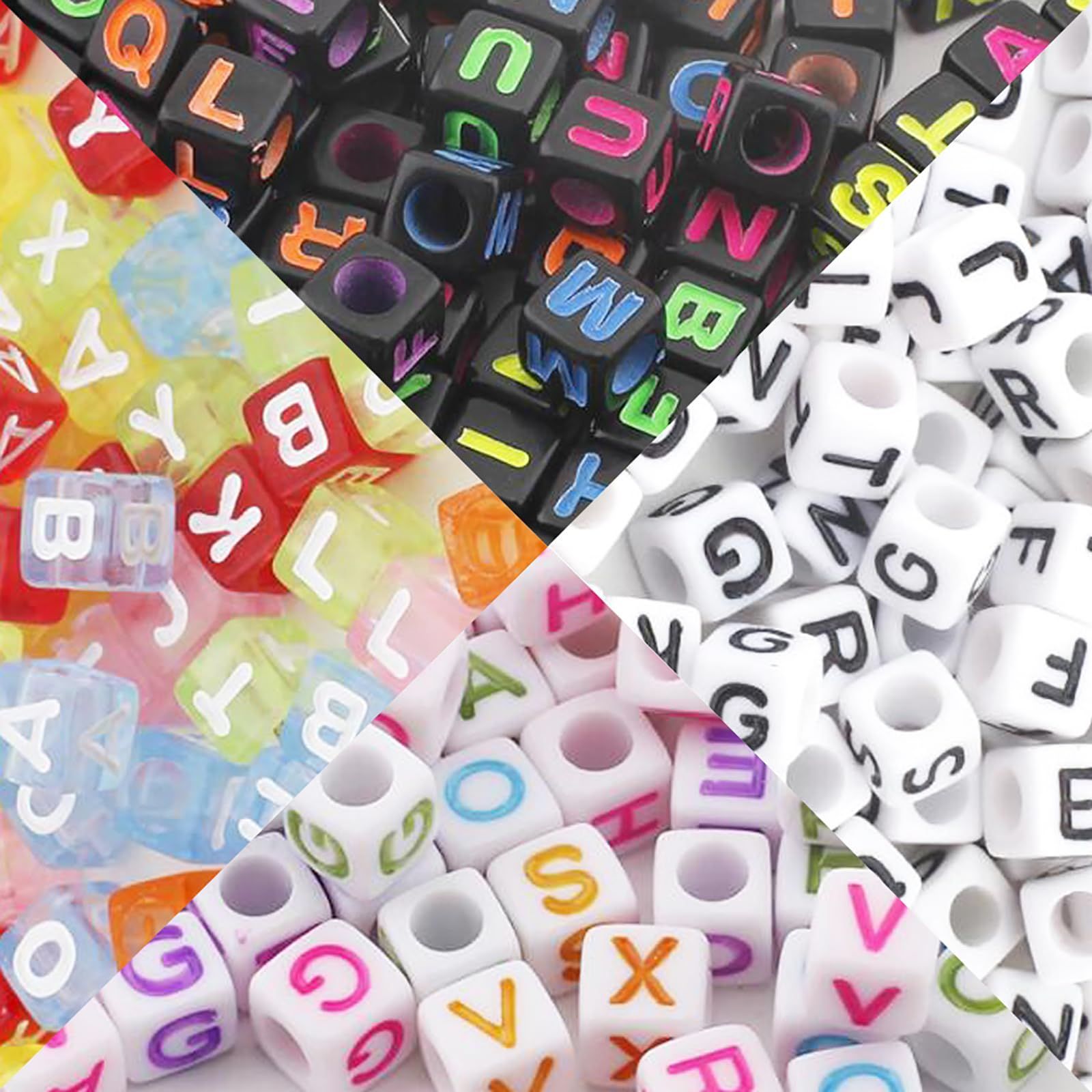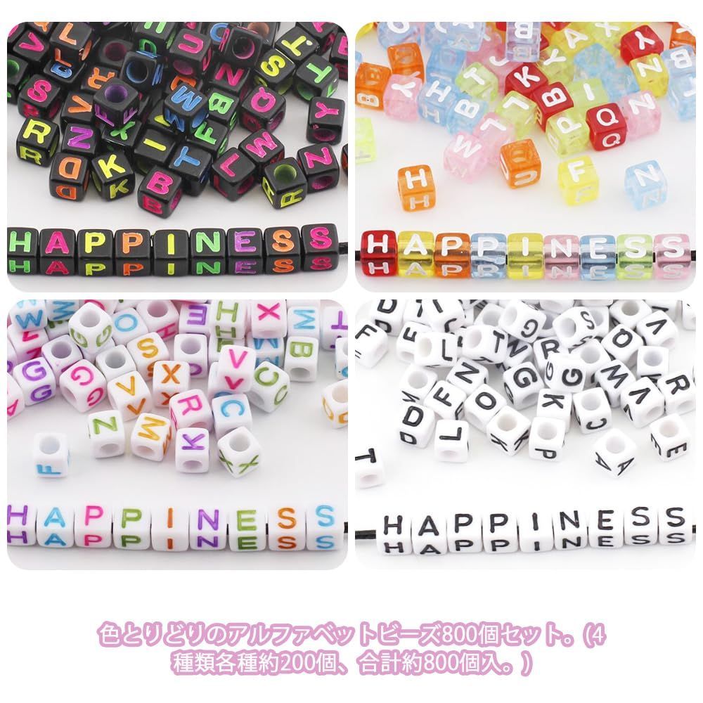 GOODCHI ビーズ アルファベットビーズ アルファベット パーツ カラフル キューブ型 DIY ブレスレト ジュエリー ハンドメイド アクセサリー スペーサービーズ 6mm 約800個