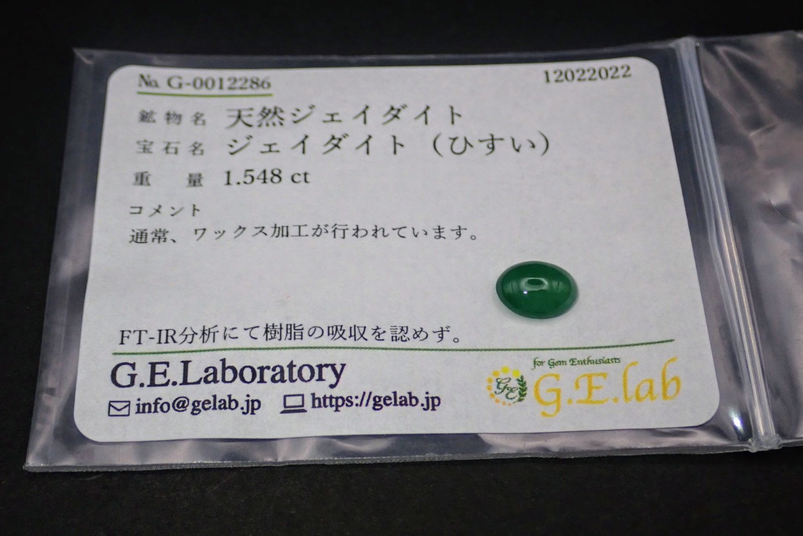 天然ひすい ルース 1.548ct 約6mm×8mm* ソーティング付き!