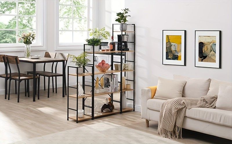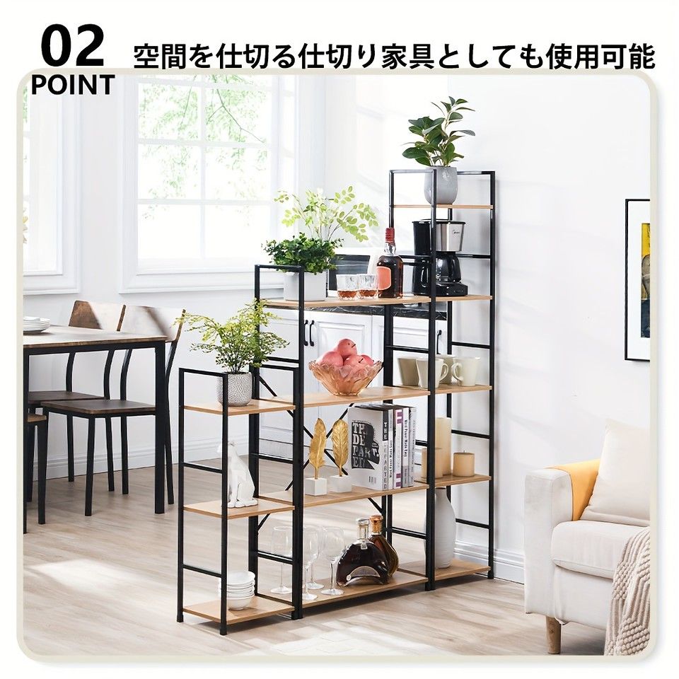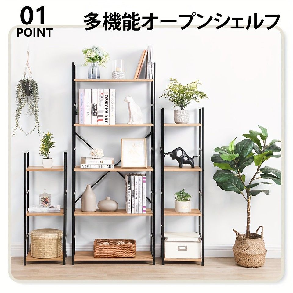 * **スタイリッシュなデザイン**: 金属フレームと木製棚板のモダンな組み合わせは、お部屋のアクセントになります。