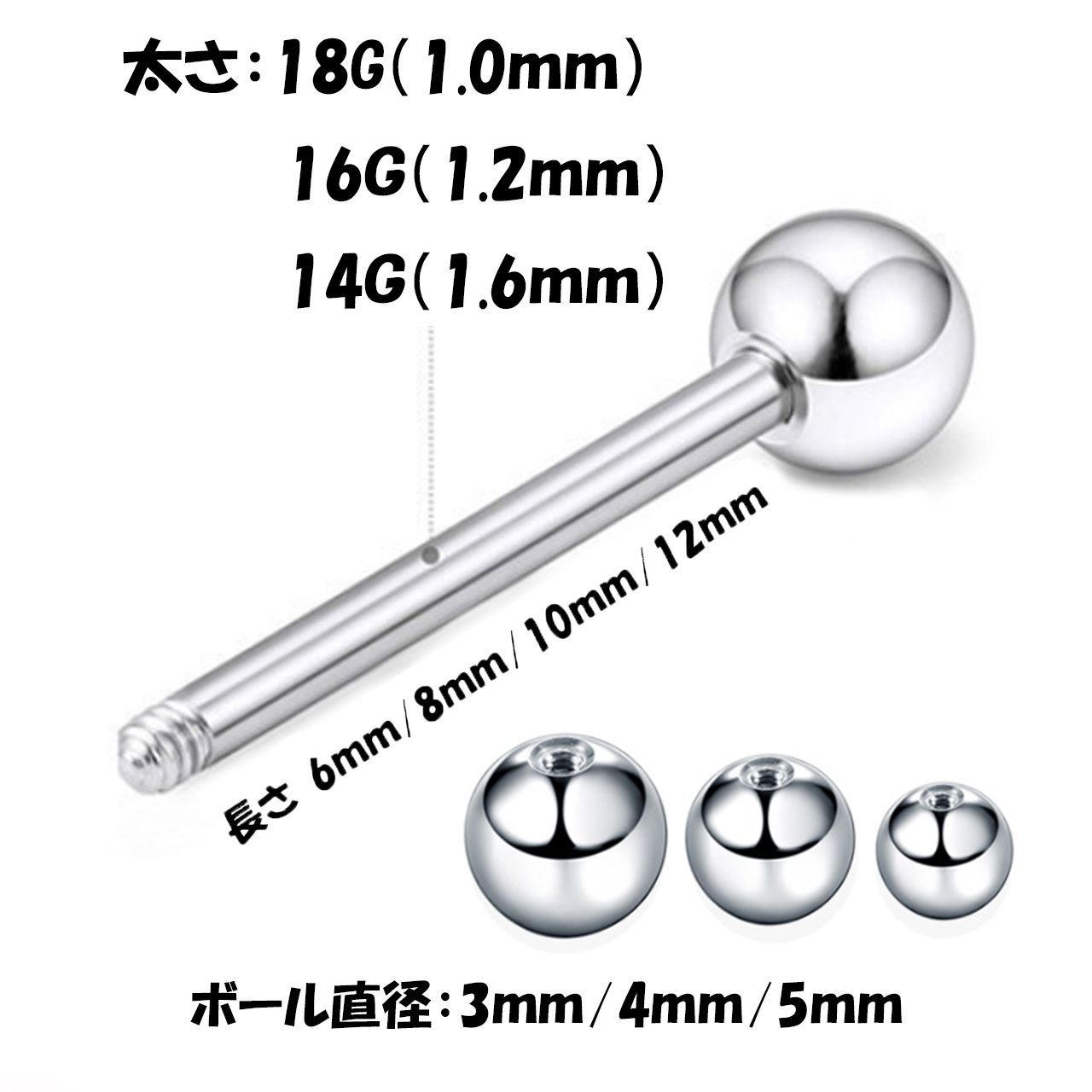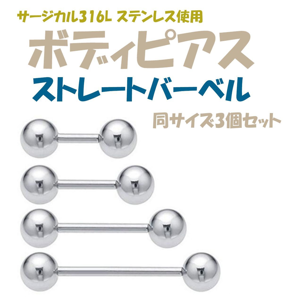 ボディピアス 18G ストレートバーベル ステンレス アレルギー対応 3個セット