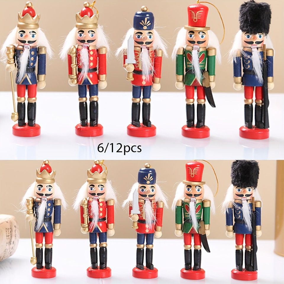 【クリスマス・ハロウィンに】木製ナツメヤスリ兵士置物 12個/6個セット 伝統的ヨーロピアンスタイル 赤金装飾 羽飾りヘッドドレス付き ホリデーホームデコレーションに最適【12個セット】