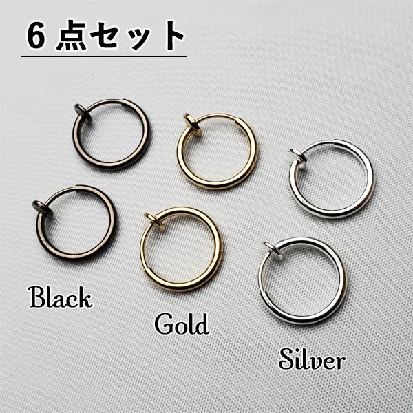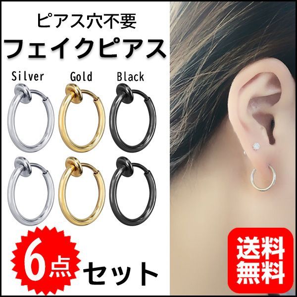 フェイクピアス 細い メンズ レディース イヤーカフ フープピアス 小さめ イヤーカフピアス フープイヤリング 軟骨 6点セット ◆
