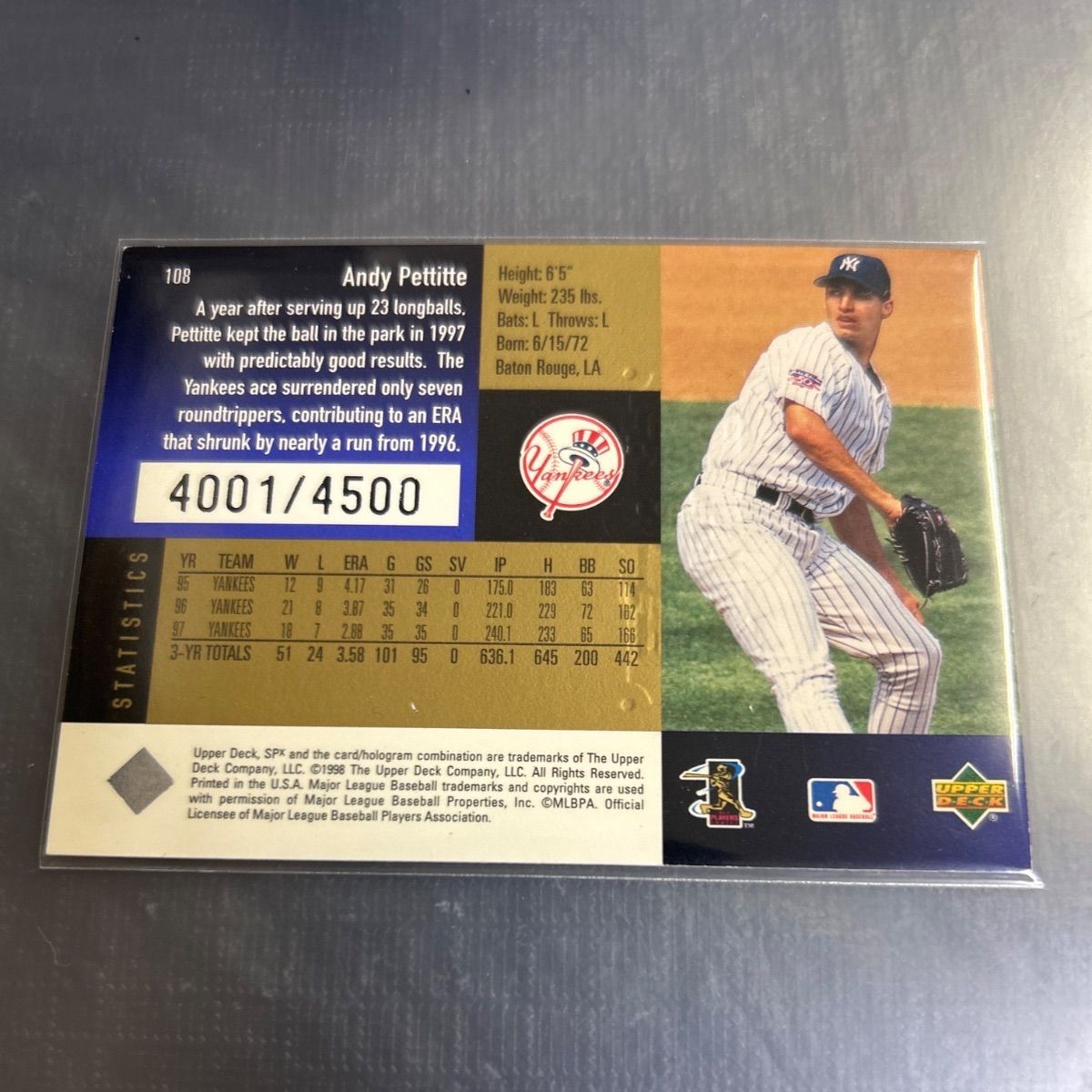 MLB 1998 Upper Deck SP Andy Pettitte NY Yankees 4001/4500
