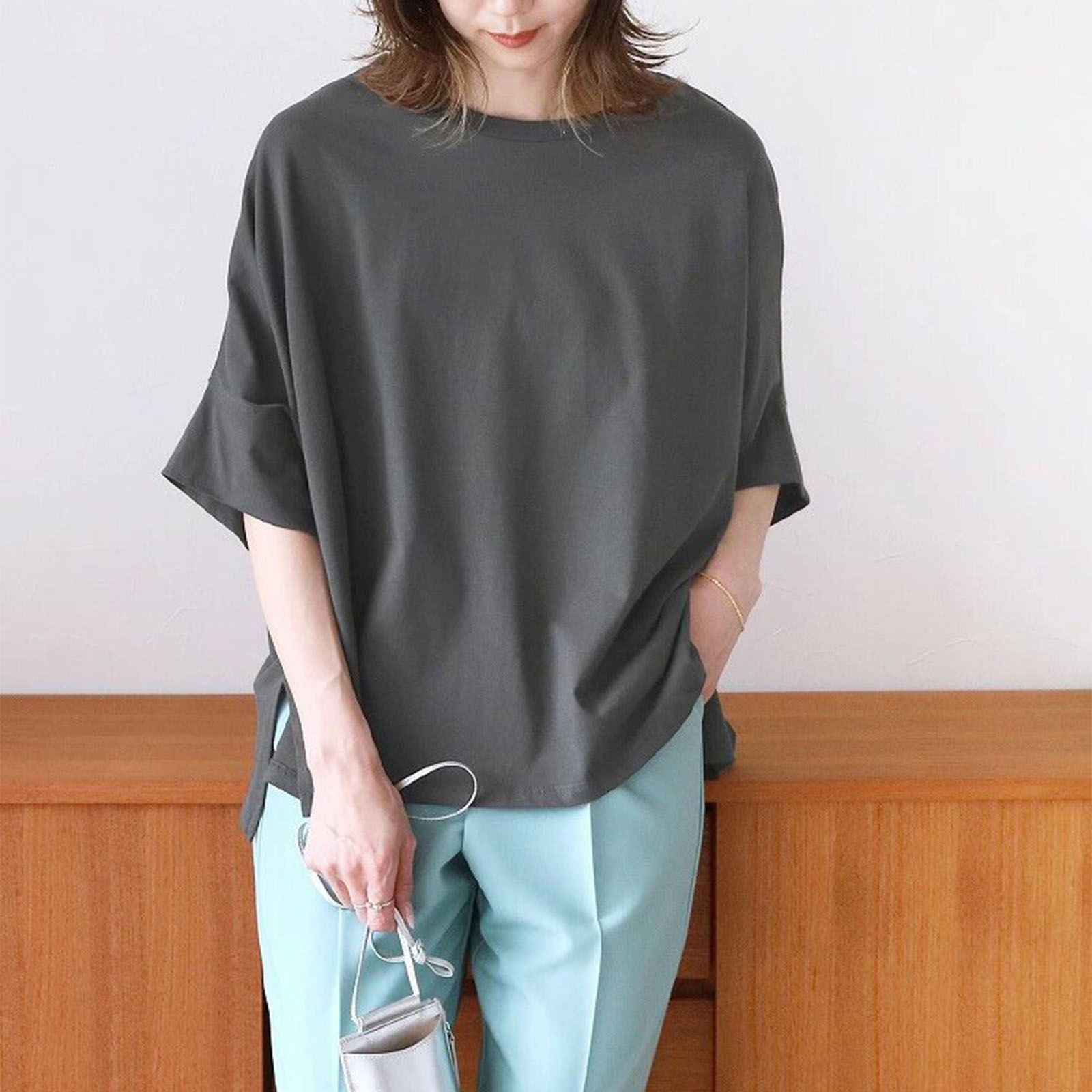 ☆優良ショップ☆ Tシャツ レディース tシャツ トップス カットソー 5分袖 半袖 ドルマン スリット 無地 ベーシック お洒落 綺麗め 可愛い ゆったり 春 夏 秋 ◾️ダークグレー◾️ /全国送料無料/ /数量限定/ /安心の追跡配送/ ♡