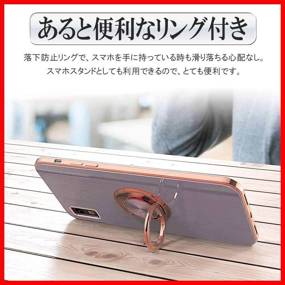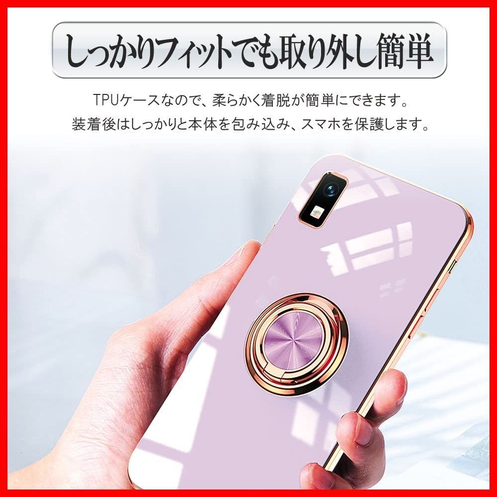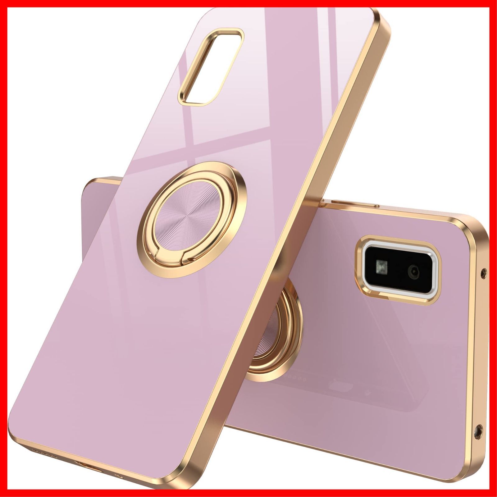【在庫わずか】シリコン 超薄型 耐衝撃 AQUOS 360回転カバー wish2 SH-51C スタンド機能付き wish TPU保護ケース SHG06 ソフトケース 用 パープル リング付き x ピーシーエーテック ゴールド