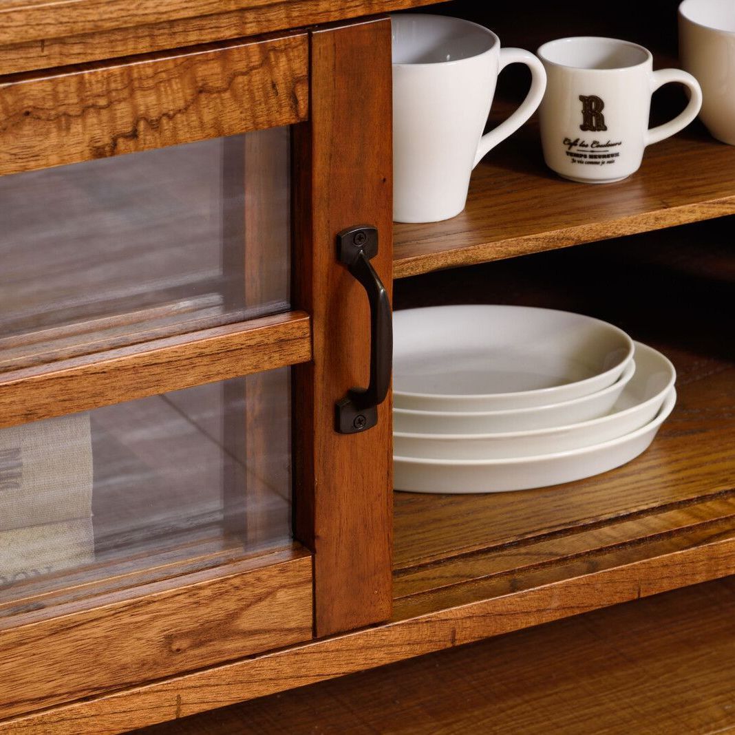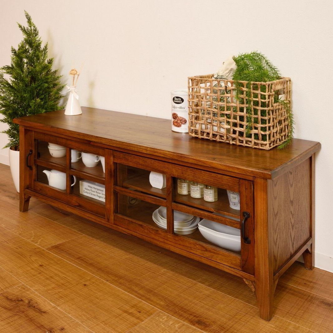 ♪天然木 ガラス戸棚付 ローボード [幅120cm] テレビボード リビングボード TVボード テレビ台