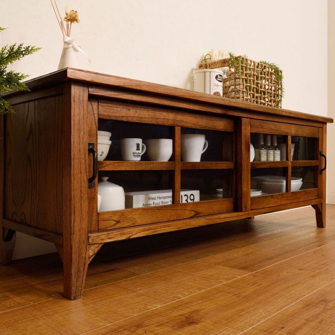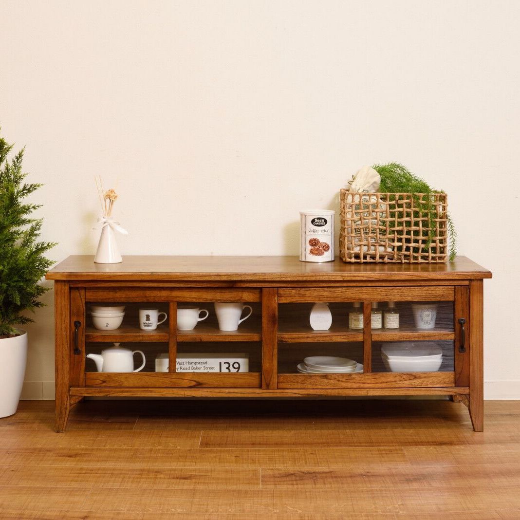 ※この商品は北海道・沖縄県・離島にはお届けできません、ご了承ください。 ※複数店舗で販売しているため、在庫切れとなるケースがございます。 食器棚にも、テレビボードにもなるローボード サイズ:W120×D40×H45cm 重量:19.0kg ■生産地:インドネシア ■素材・成分:【材質】天然木(ミンディ) ラッカー塗装 3mm強化ガラス 【機能】前扉スライド 棚は固定式 背面に配線穴 【静的耐荷重】50kg 【組立】完成品 ※ご注文後のキャンセルはご遠慮ください ※お客様都合による返品・交換はお受けいたしかねます ※当社提携倉庫より発送いたします ご注文いただきました地域により発送場所がかわることがございます。