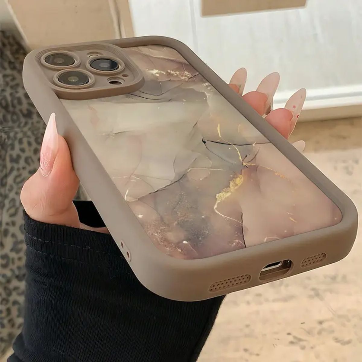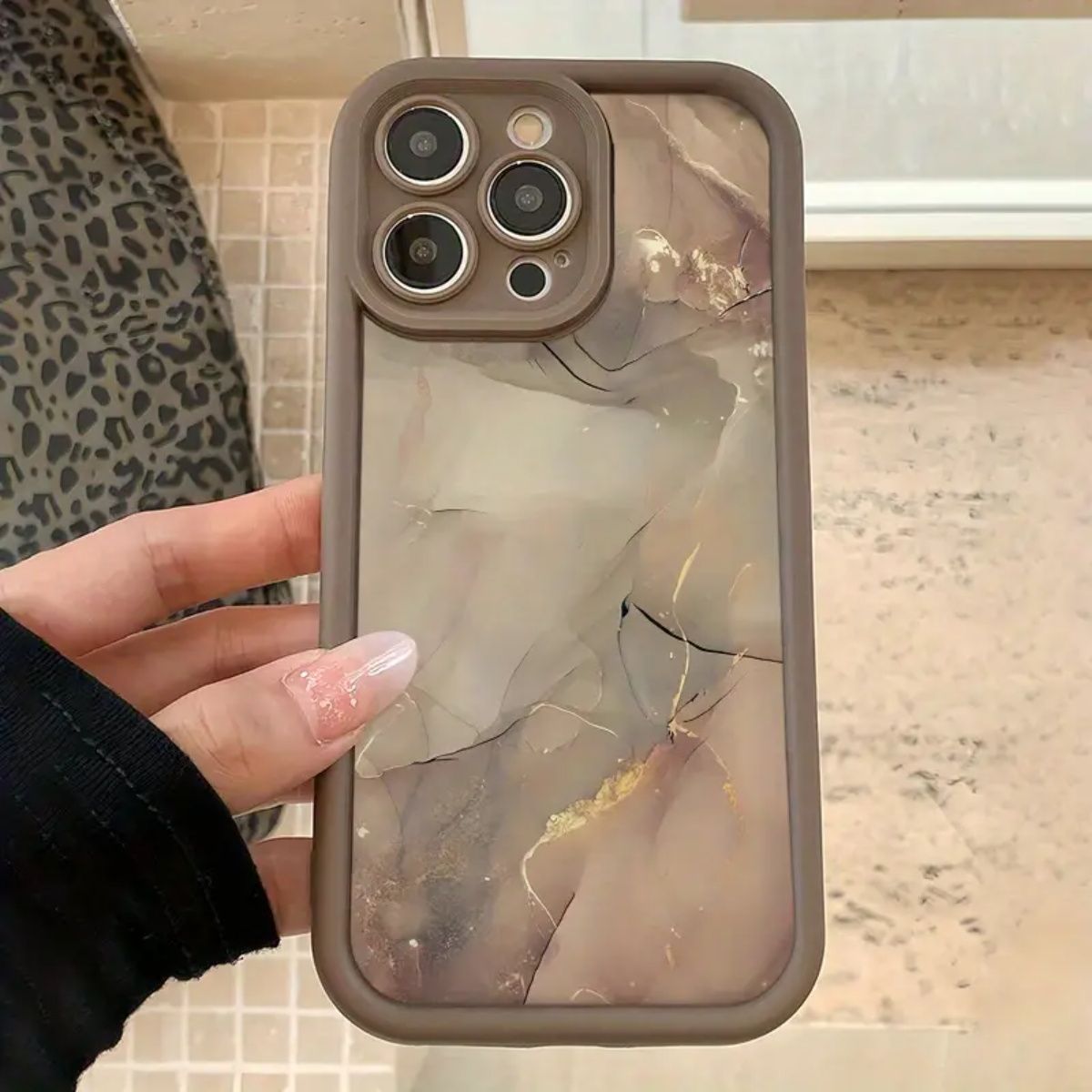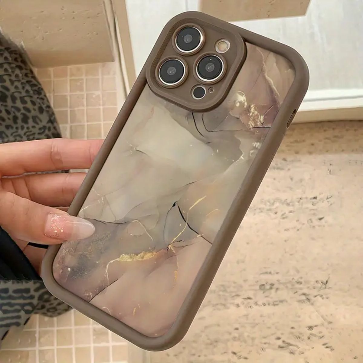 マーブルブラウングラデーションTPUフルカバープロテクティブケース、Apple iPhone 16/15/14/13/12/11/XS/XR/X/7/8/Mini/Pro/Plus/Pro Max用