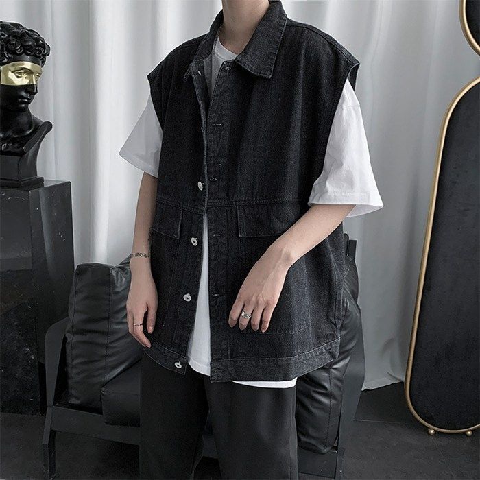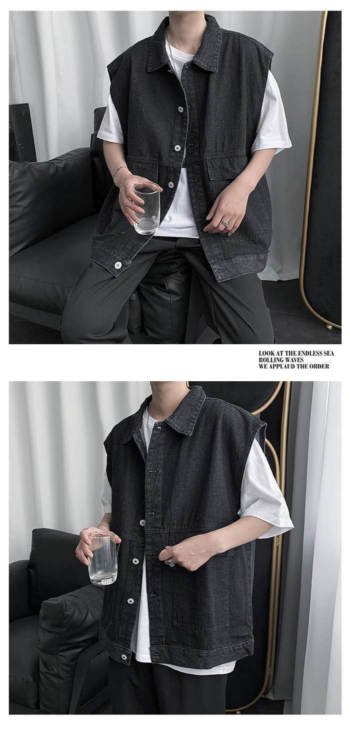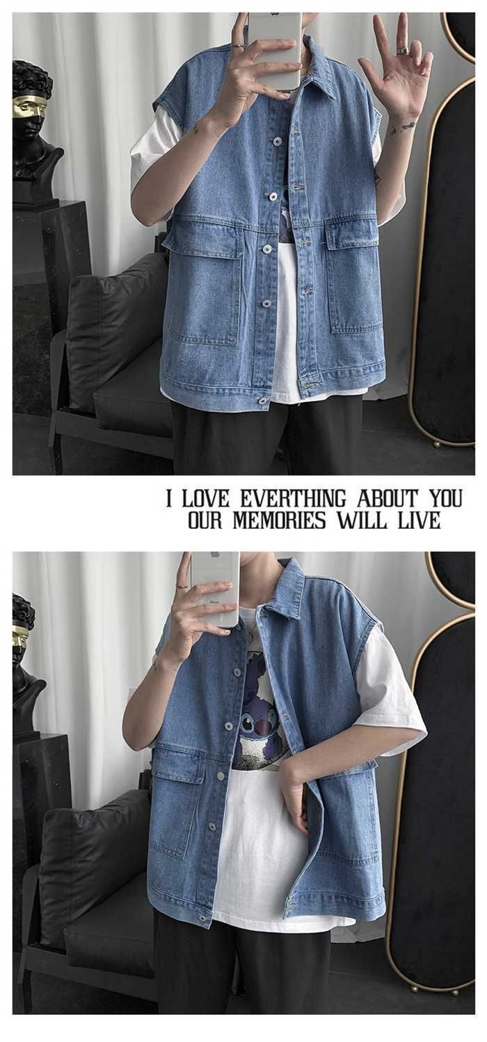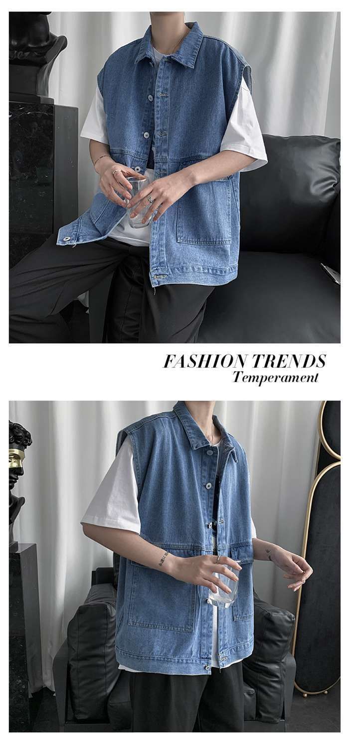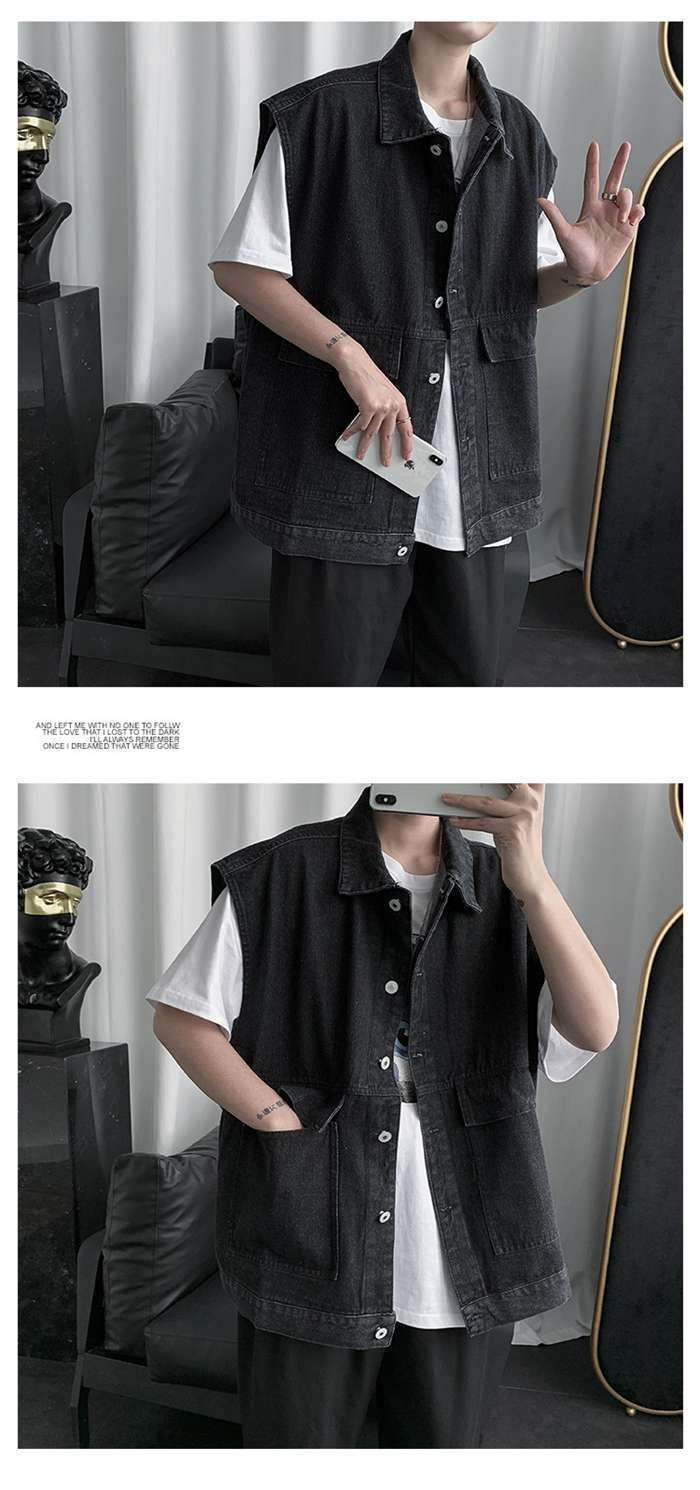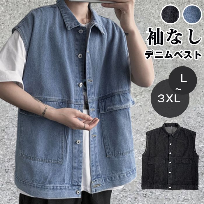 ベスト メンズ デニムベスト ジレ ジャケット チョッキ デニム カジュアル アウター 袖なし ノースリーブ ポケット ストリート ジージャン