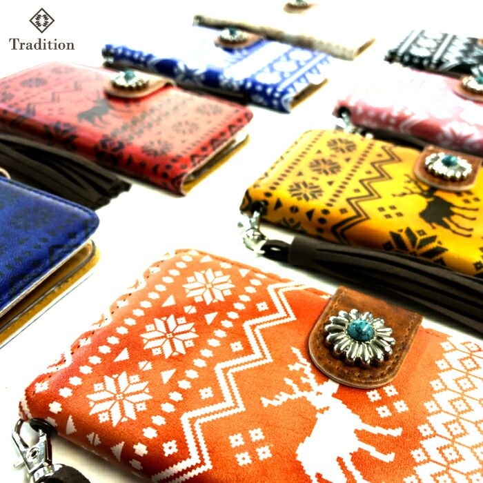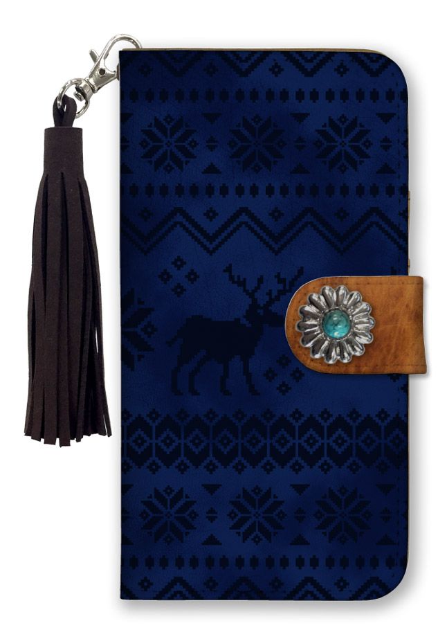 Galaxy S24 FE SCG30 ケース 手帳型 ギャラクシーS24 FE SCG30 スマホケース フリンジ ストラップ付 コンチョ ノルディック柄 フェアアイル トナカイ かわいい オレンジ ピンク ネイビー カラー04