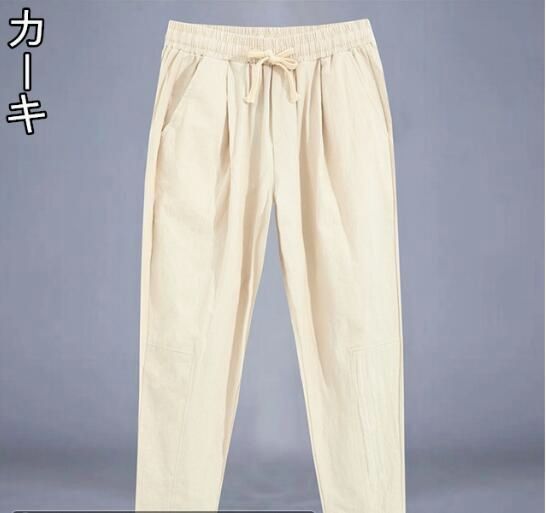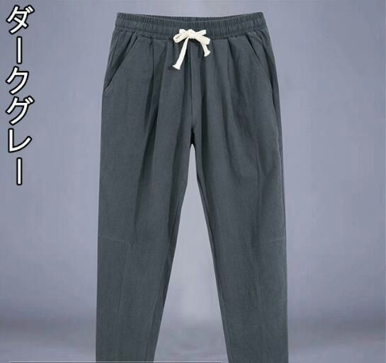 リネン風 メンズ パンツ メンズ サルエルパンツ 春秋 大きいサイズ ゆったり ズボン 綿麻風 九分丈 ボトムスgoodplusx17