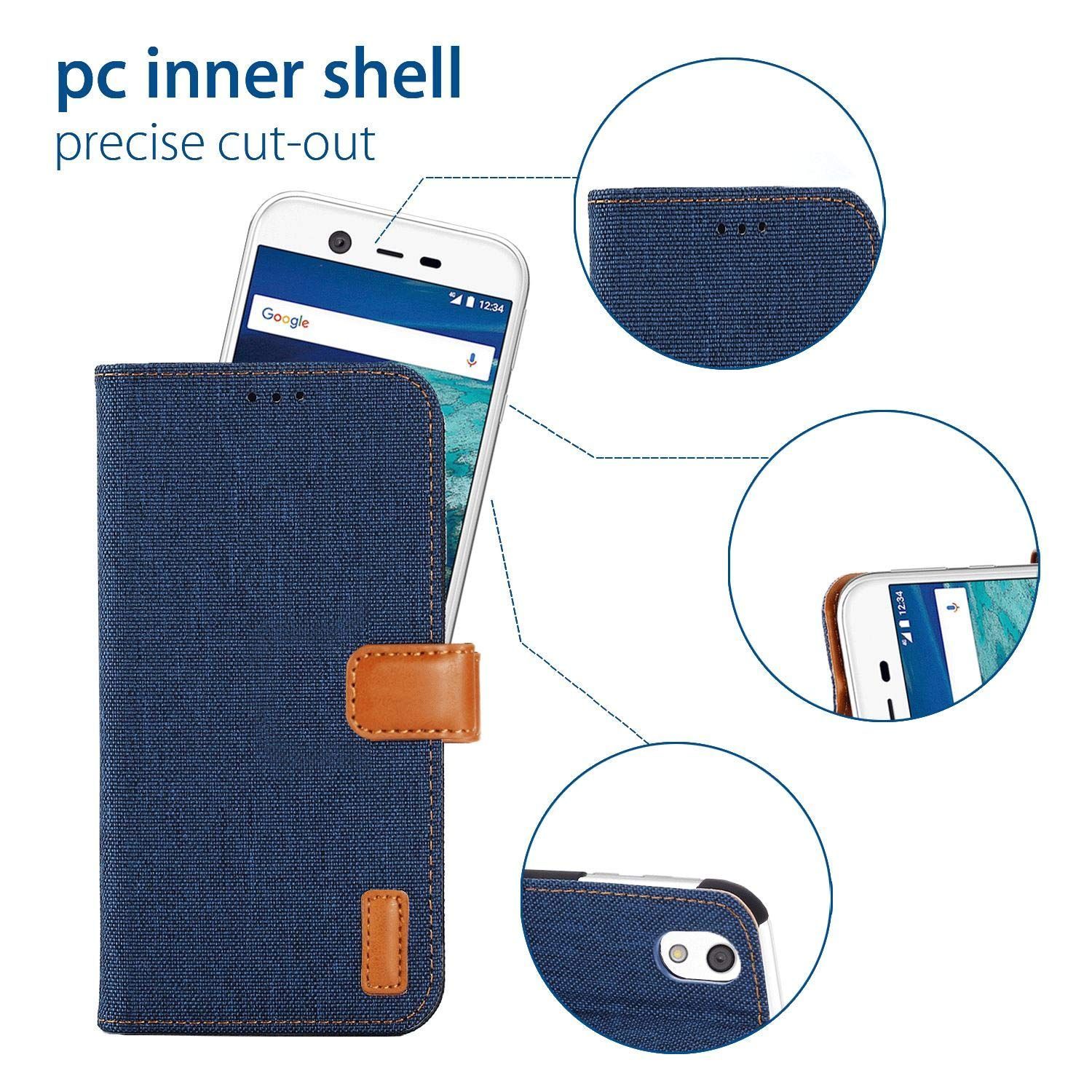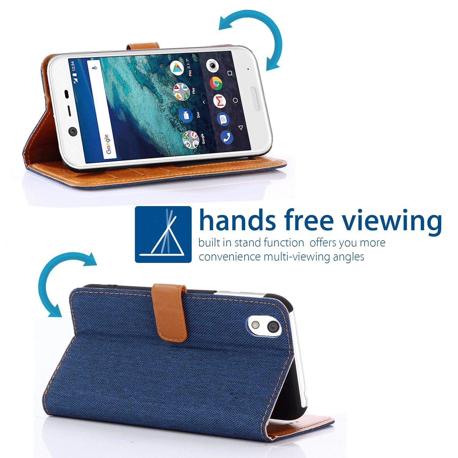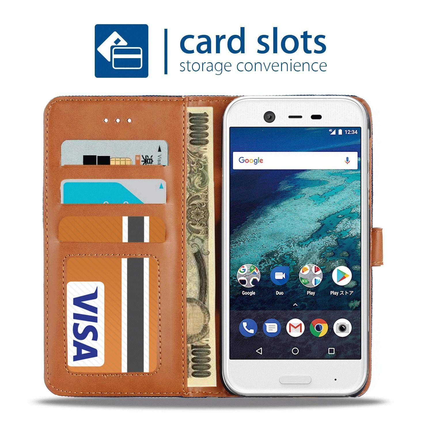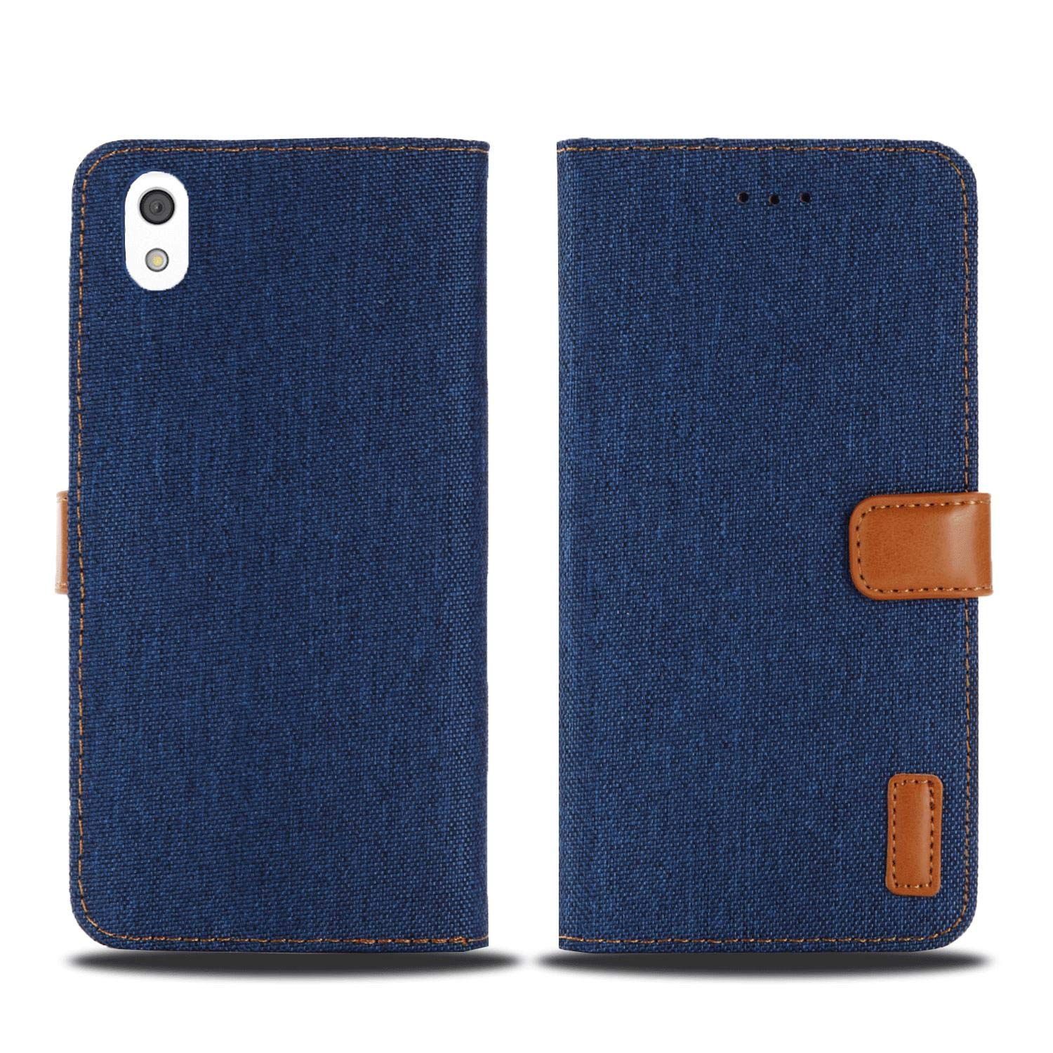 【 Viesa 】 新型モデル デニム デザイン ケース 手帳型 Y!mobile Android One X1 対応 SHARP 手帳ケース (ダークブルー) 全面保護 ベストデニム材料 カード収納ポケット 横置きスタンド機能 スマホケース シャープ ワイモバイル アンドロイドワンx1 BLUE