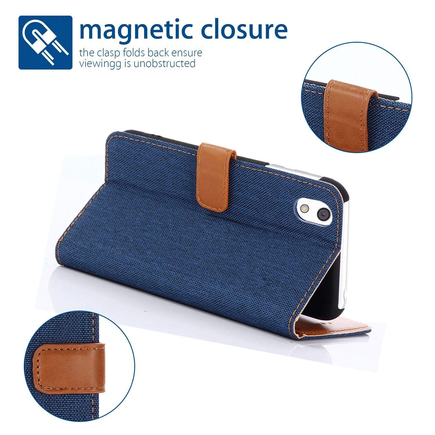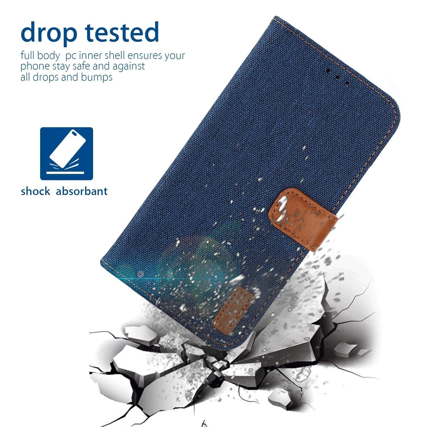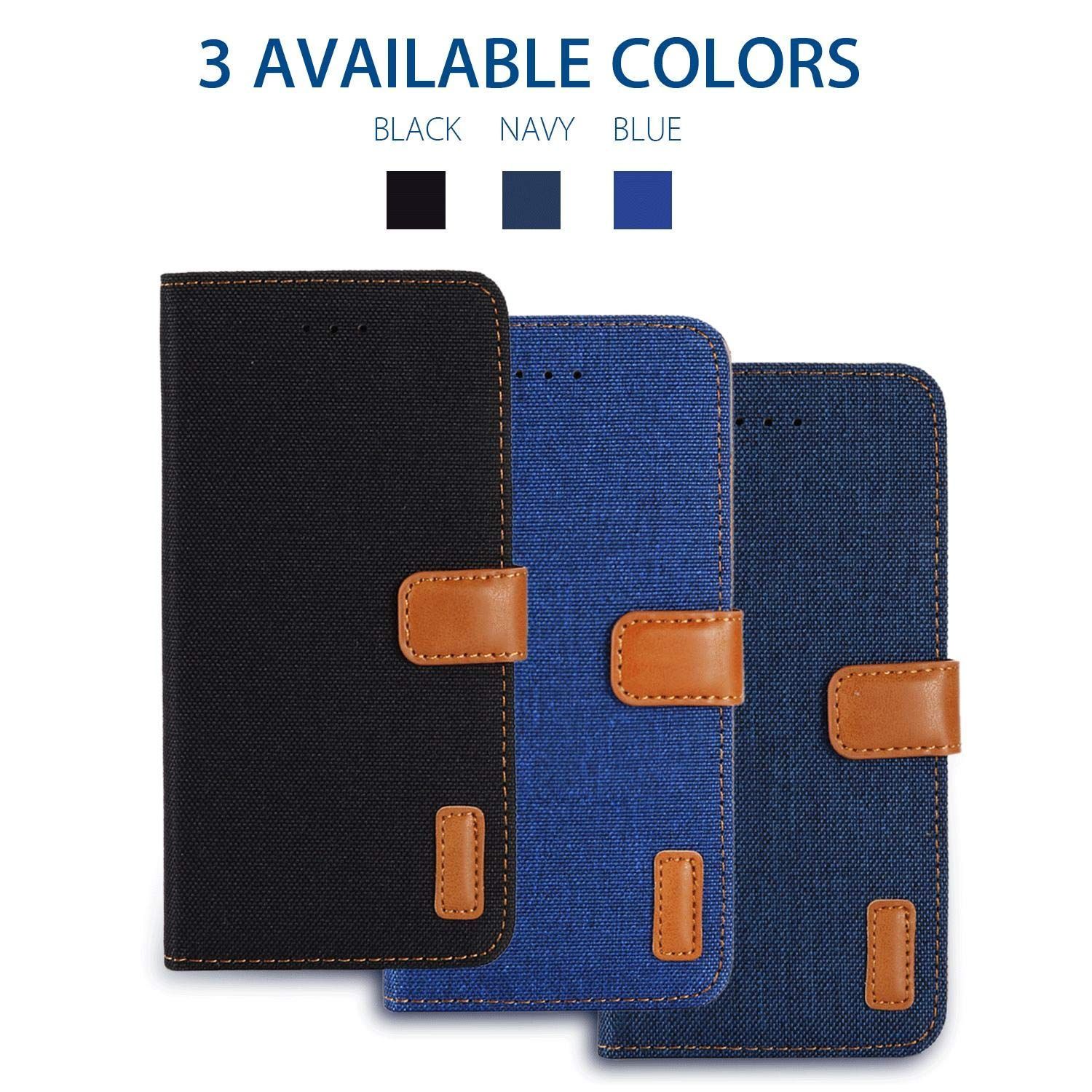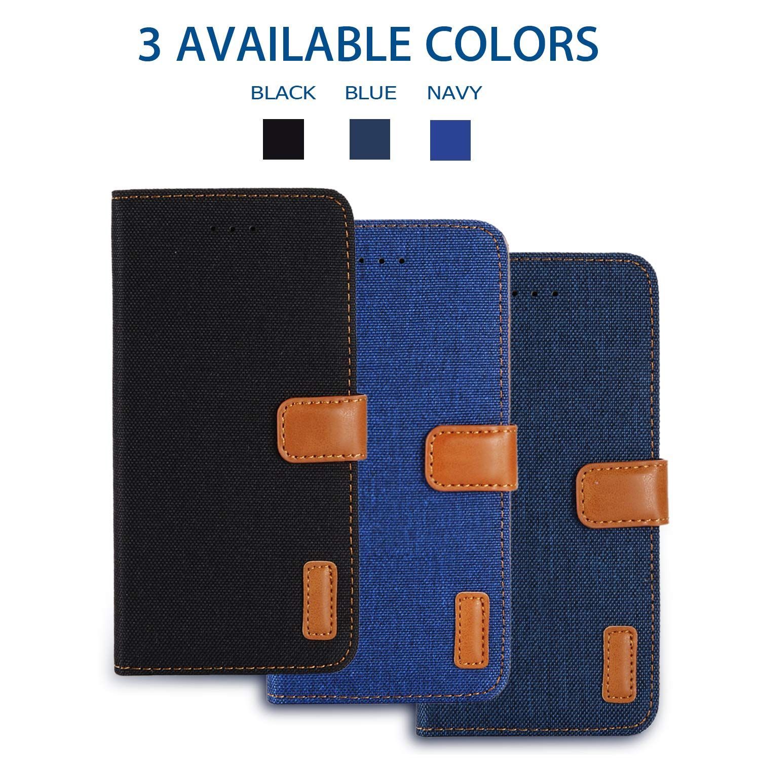 【 Viesa 】 新型モデル デニム デザイン ケース 手帳型 Y!mobile Android One X1 対応 SHARP 手帳ケース (ダークブルー) 全面保護 ベストデニム材料 カード収納ポケット 横置きスタンド機能 スマホケース シャープ ワイモバイル アンドロイドワンx1 BLUE