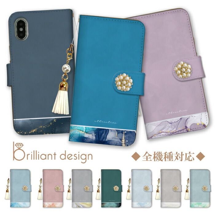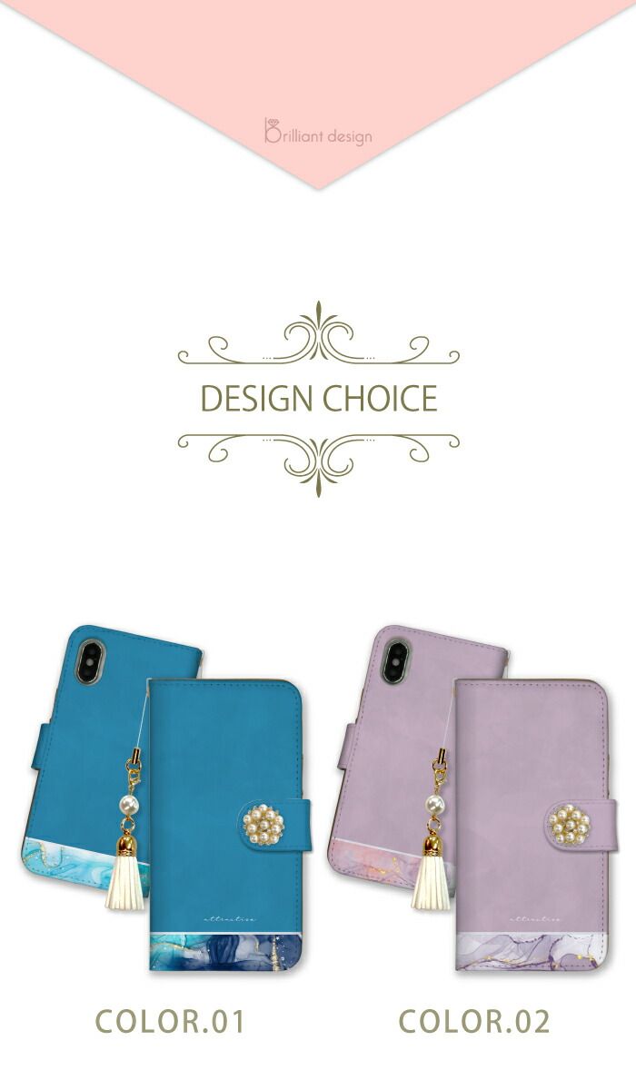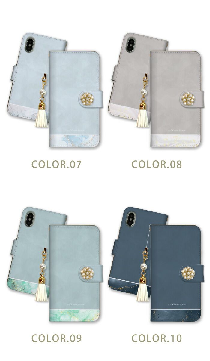 Xperia 10 V SO-52D SOG11 A302SO ケース 手帳型 エクスペリア10V スマホケース パール デコ付き ストラップ付 韓国 大理石 マーブル柄 おしゃれ オシャレ 大人 ネイビー ブルー パープル カラー03