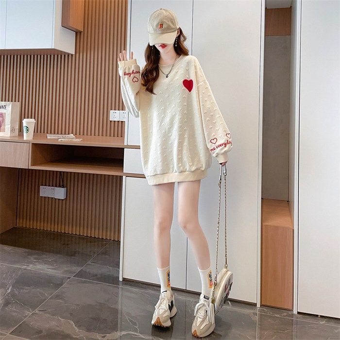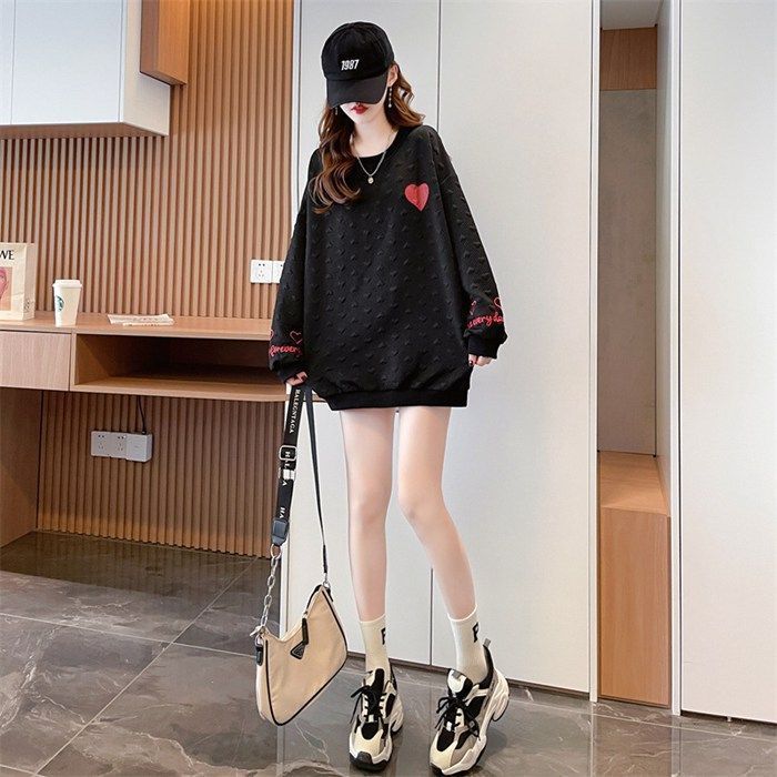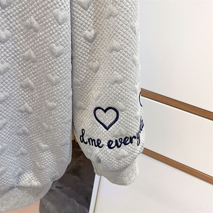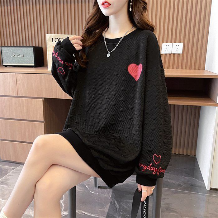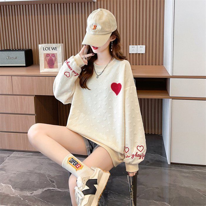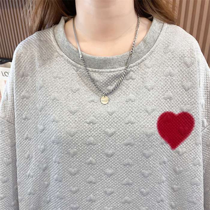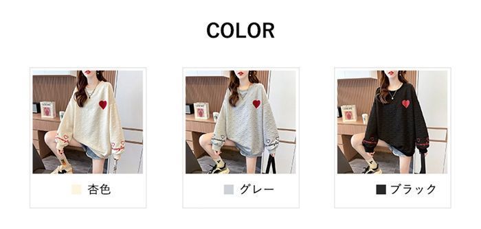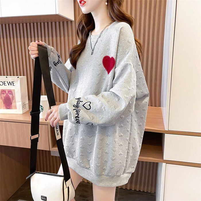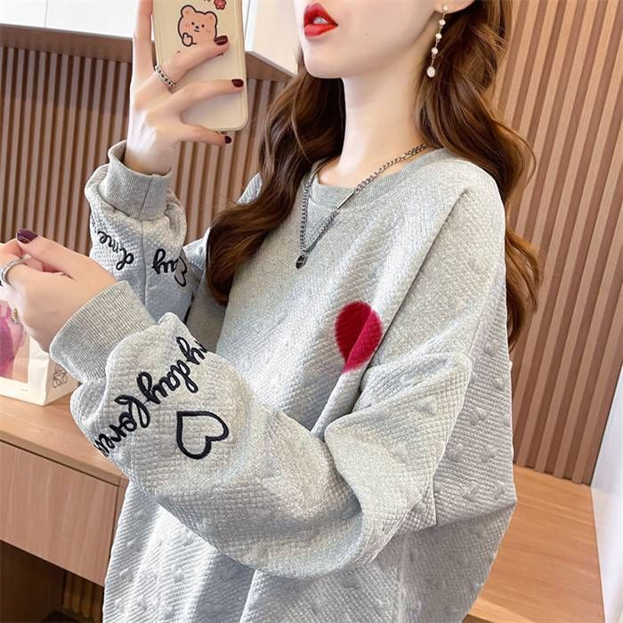 トレーナー レディース スウェット ラウンドネック ロゴトレーナー ロンT Tシャツ エンボス加工 プルオーバー ハート刺繍 長袖 体型カバー トップス おしゃれ 可愛い シンプル カジュアル 韓国ファッション yiguli01