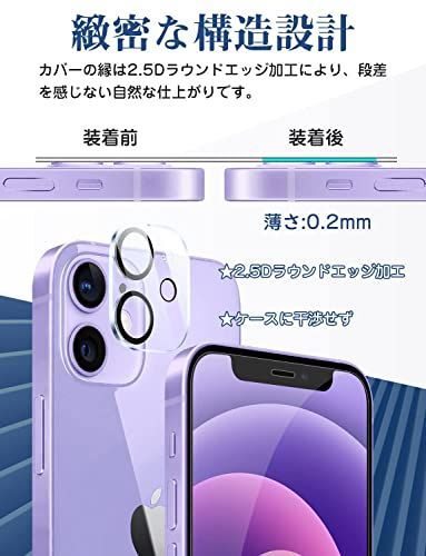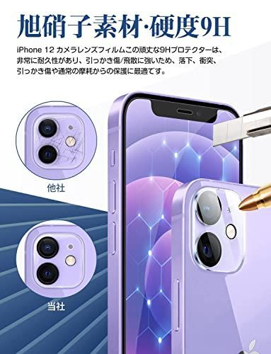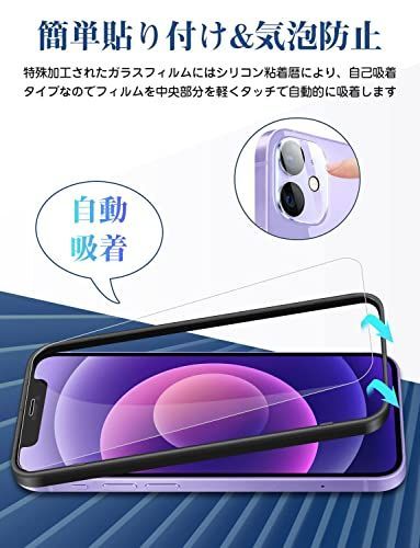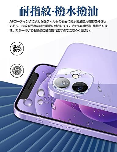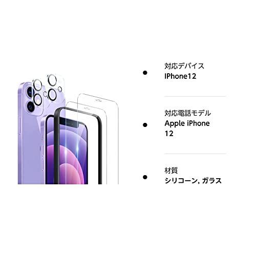 iPhone12 ガラスフィルム【2枚】 iPhone12 カメラフィルム【2枚】 旭硝子素材製 硬度9H 耐衝撃 キズ防止 極薄タイプ 【ガイド枠付き】高透過率 撥水撥油 飛散防止 気泡防止 汚れに強い アイフォン 12 フィルム+ アイフォン 12 レンズフィルム - 6.1"
