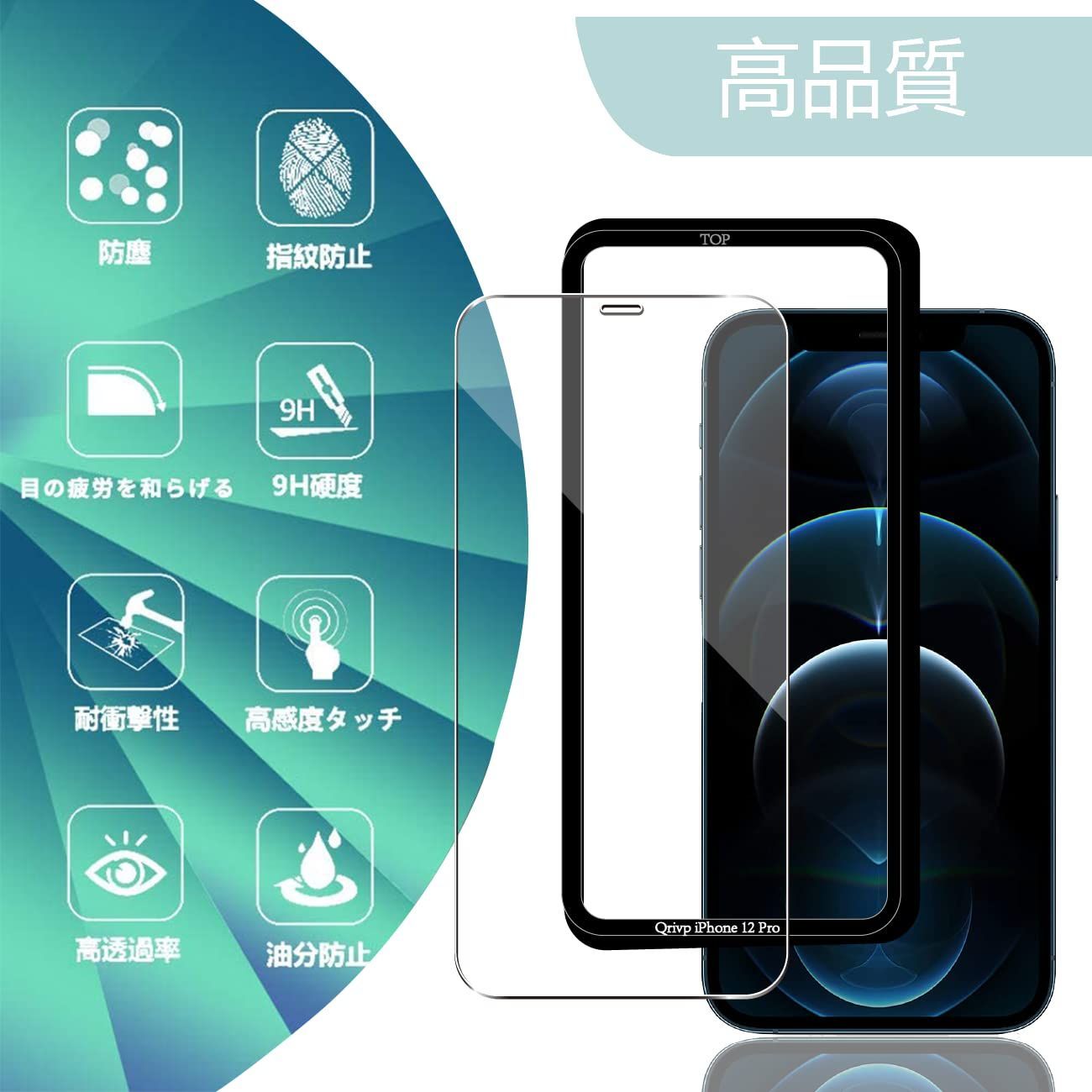 Qrivp ガラスフィルム iphone 12 / 12 pro ガラスフィルム 【2枚セット ガイド枠付き】日本旭硝子素材製 iphone 12 / 12 pro 保護フィルム 強化ガラス アイフォン 12 / 12 pro 液晶保護フィルム 3D Touch対応 光沢 防指紋 撥水・防水 気泡レス 耐衝撃 飛散防止 自動吸着 貼り付け 簡単 硬度9H 高透過率 撥水撥油 指紋防止