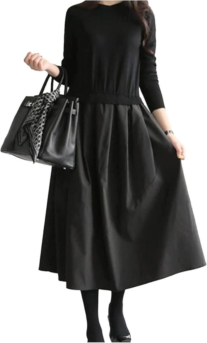 FAAMEE(フェイミー) 切り替え ワンピース レディース ロング カジュアル 長袖 上品 大きいサイズ シンプル カットソー マキシ リラックス オシャレ カワイイ キレイメ お洒落 ラクチン(ブラック, Free Size)
