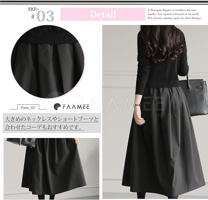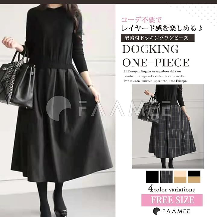 ~~~~~~~~~~~~~~~~~~~~~~~ *即購入大歓迎 *送料無料! 取引中メッセージなしでも構いません♪ この商品の他のカラー・サイズ・種類もそろえています! よかったら下のワードを検索してくださいね(^ ^) ↓↓↓↓ 2B2XRQ3UJT で検索 ~~~~~~~~~~~~~~~~~~~~~~~ ----------------------- 着回し力抜群のスカートドッキングワンピースの登場。 高級感たっぷりで、1枚で簡単大人女子になれる優れモノ。 動くたびにふんわり揺れて、女性らしさ溢れるシルエットを演出できますよ。 ラウンドネックで上品な大人っぽさとフェミニン感を演出してくれるナチュラルアイテムです。 1枚サッと着るだけで大人可愛い主役級のスタイリングが完成するので、忙しい朝のコーデや外出コーデに迷った時の頼れるアイテムに。 ふんわり揺れるマキシ丈スカートが女性らしい華やかさを演出してくれます。 美シルエットで、大人女子には嬉しい着痩せ効果が期待できます。 長時間の着用でもストレスフリーな着心地なので、妊婦さんのお洒落マタニティーウエアーやママコーデにもオススメ。 ニットタイツや着るタイツなど、暖かい足元にコーデぴったりです。 カラーバリエーションは、ブラックxブラックとブラックxチェックの2種類をご用意しております。 ついヘビロテしたくなる大人カラーをご用意しており、親子や姉妹、お友達などとお揃いや色違いで着ていただくのもオススメですよ。 トレンド感満載の長袖マキシワンピースは秋、冬、春先までロングシーズン大活躍。 シンプルなワントーンカラーなので、お手持ちのロングネックレスやチョーカー、ピアスやイアリング、バングルやブレスレット、サングラスやサコッシュ、ファー小物やヘアーアクセサリーなどの季節に合わせた小物やアクセサリーはよく映えるので、オリジナルコーディネートを楽しむのはいかがでしょう。 落ち着いたデザインなので、10代、20代、30代、40代、50代、60代と多くの方に愛用していただけます。 幅広いシーンで活躍するアイテムは コーデに困ったときの強い味方となる優秀かつ旬な1枚になりますよ。 足元にはブーツやパンプス、厚底やローファー、ヒールなど、幅広く合わせることができます。 デニムジャケットやスヌード、マフラーやストールに明るいカラーのスニーカー、スリッポンと合わせればカジュアルにも着こなせるので、様々なテイストのスタイリングが楽しめますよ。 普段使いはもちろん、通勤や通学、在宅ワークやリモートワーク、ショッピングやおでかけ、デートや記念日、女子会やお呼ばれ、旅行や観光、オフィス、イベントや学校行事など様々な場面で活躍してくれること間違いなし。 リゾート地にお持ちいただくのもいいですね。 「参考サイズ」 「Free」着丈118 肩幅35 バスト88 袖丈54 *サイズには若干の誤差がございますがご了承お願いします。 「素材構成」70% 綿, 30% ポリエステル ~~~~~~~~~~~~~~~~~~~~~~~ 商品管理コード : 2B2XRQWRJO ~~~~~~~~~~~~~~~~~~~~~~~