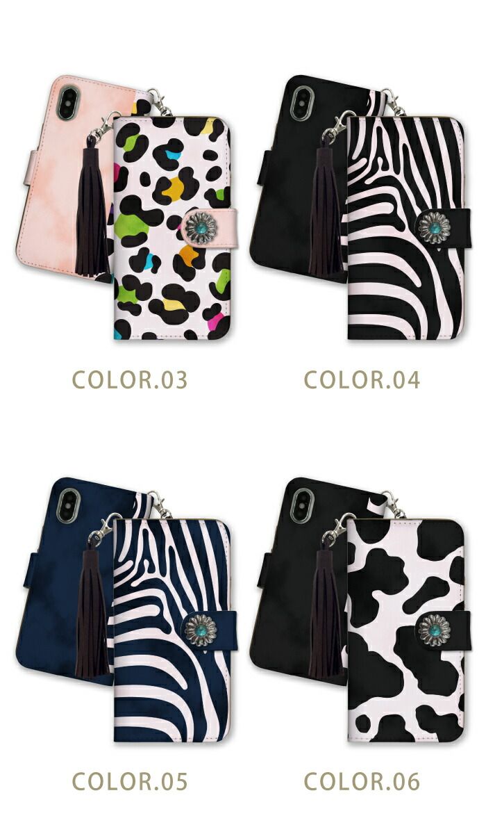 AQUOS R2 SH-03K SHV42 706SH ケース 手帳型 アクオスR2 スマホケース フリンジ ストラップ付 コンチョ おしゃれ 流行 アニマル柄 レオパード 豹柄 ヒョウ柄 牛柄 パイソン 蛇 可愛い カラー04