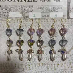 No.393 ビーズネックレス シルバー色ハート ハンドメイド レディース