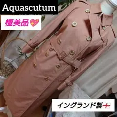 美品Aquascutumピンク トレンチコート ロングコート コットン100%綿