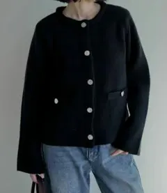 Re:EDIT✨リエディ ✨ノーカラーペプラムツイードジャケット✨黒✨L