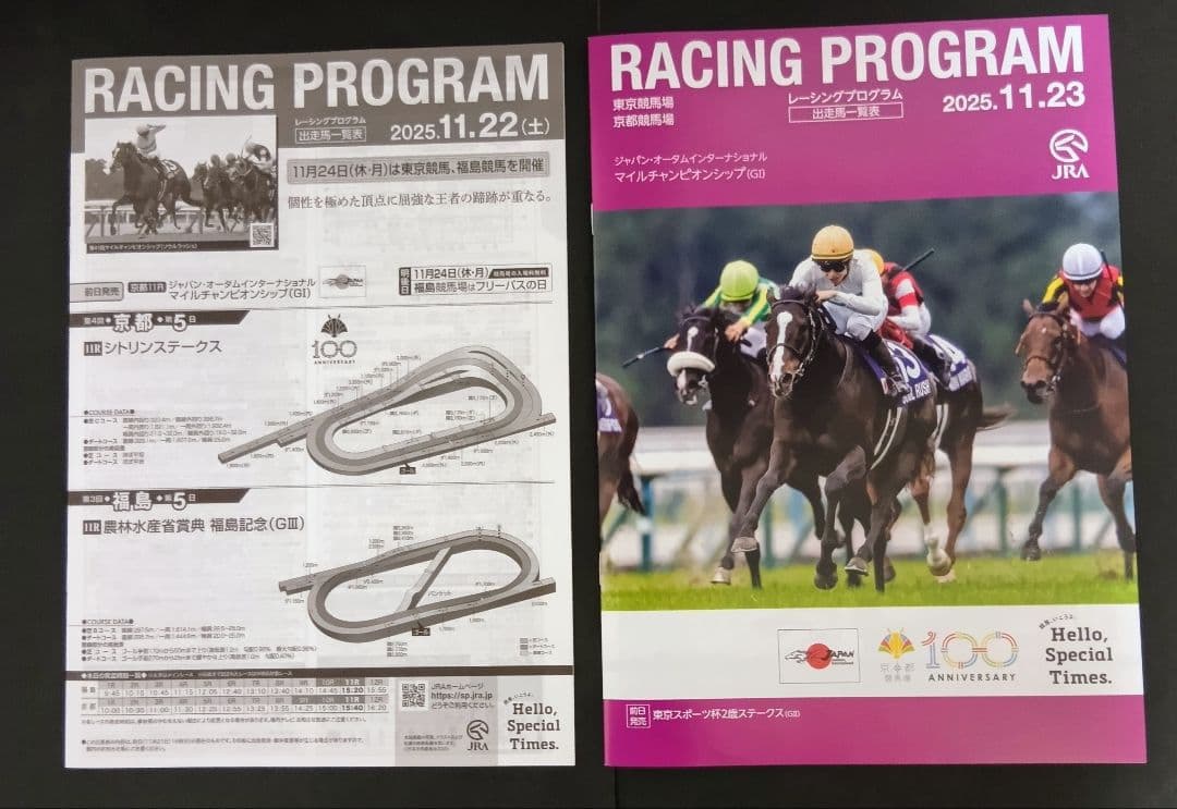 JRA2025年11月22•23日マイルチャンピオン レーシングプログラム各3冊