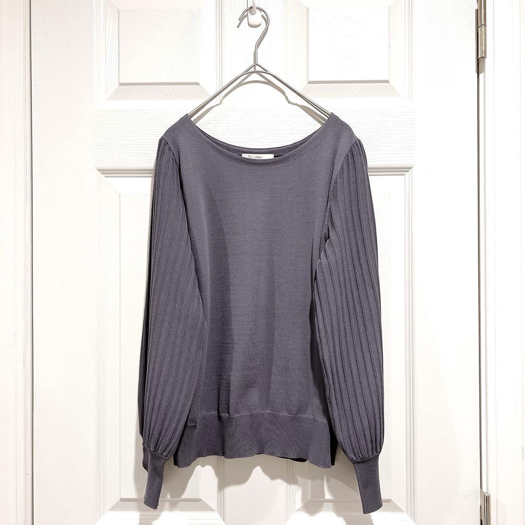 プリーツスリーブボートネックニット