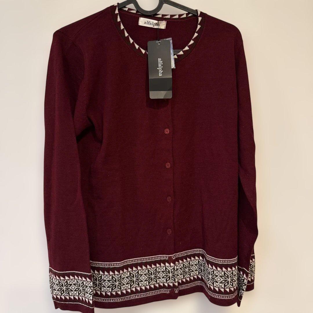 【新品】alfalpha バーガンディ 雪の結晶柄 カーディガン