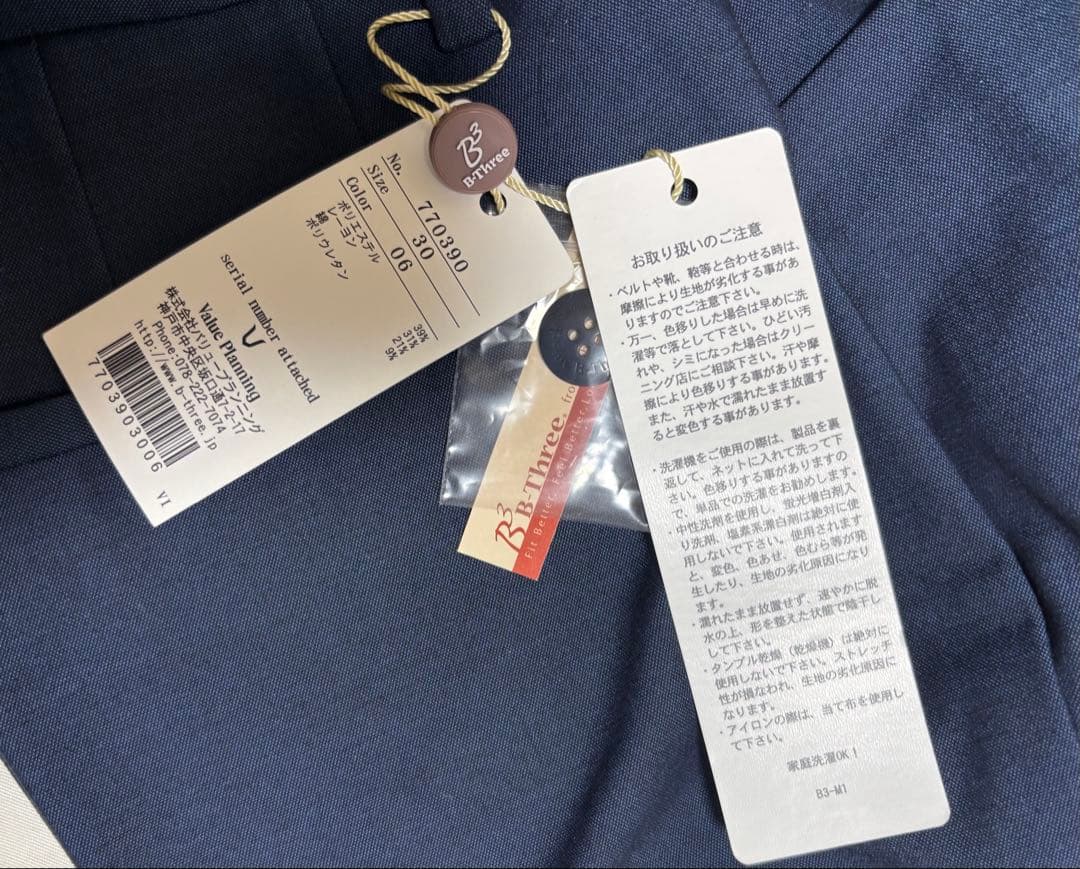 新品タグ付き・B3 B-THREE・オックスフォード・テーパードパンツ・ネイビー
