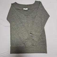 オリーブグリーン Vネック ニット 薄手