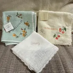 LAURA ASHLEY ハンカチ3点セット新品 タオルハンカチ レースハンカチ