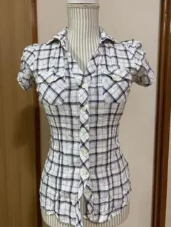 チェック柄 半袖シャツ ホワイト・ネイビー