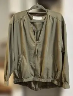【値下げ】ショコラフィネローブ 薄手ノーカラージャケット カーキ