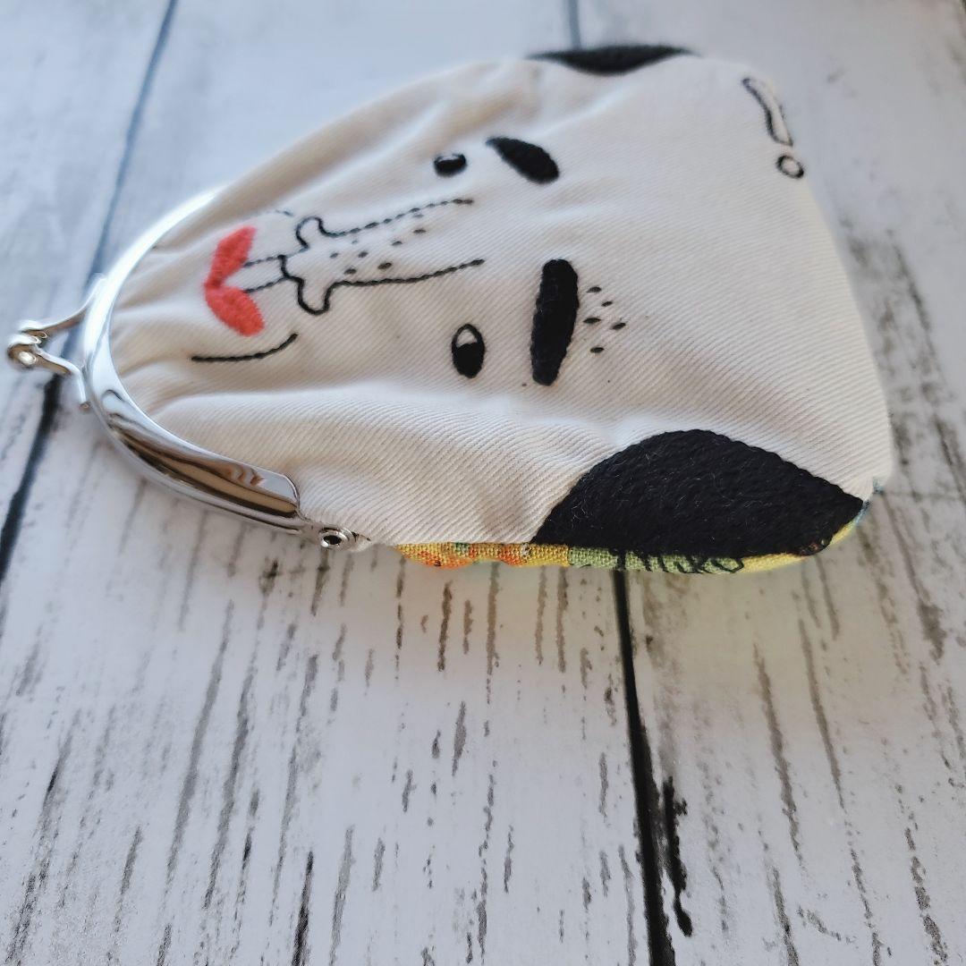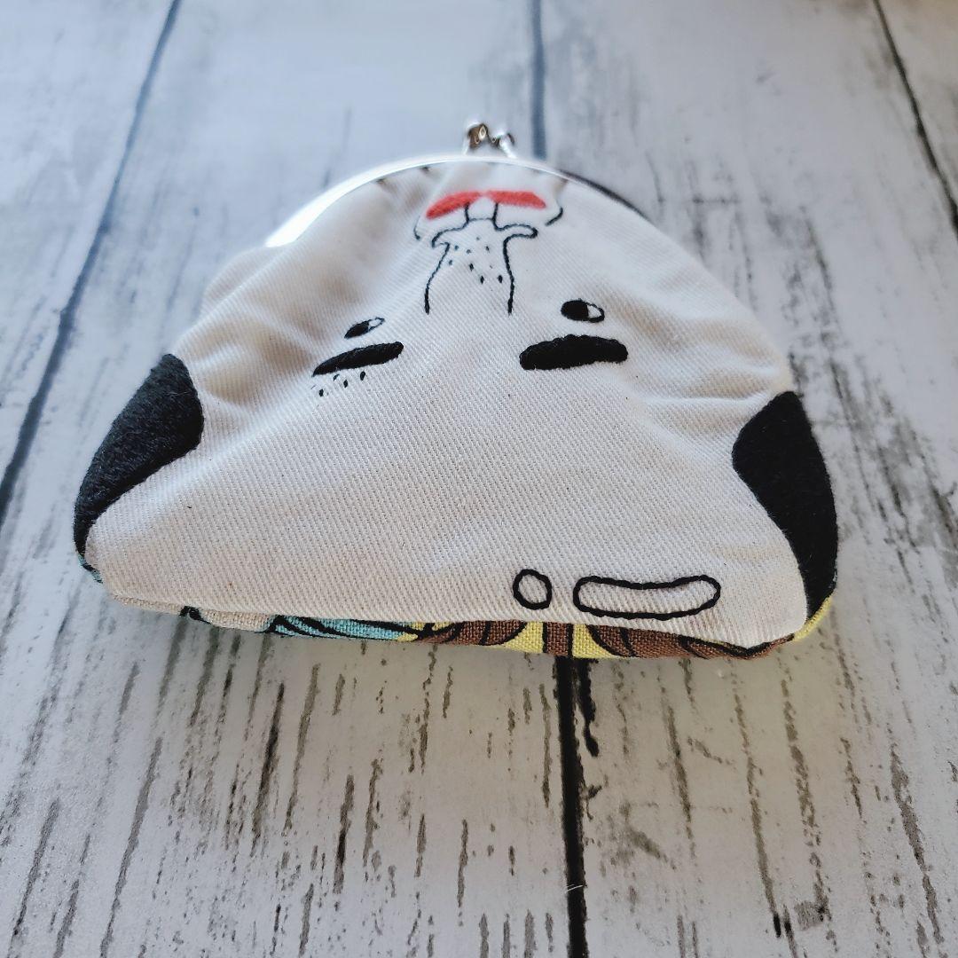 ハンドメイドがま口ポーチ はげたおじさんの刺繍