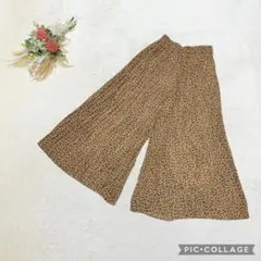 美品 ザショップティーケー 【M】 レオパード柄 ワイドパンツ プリーツ 茶色