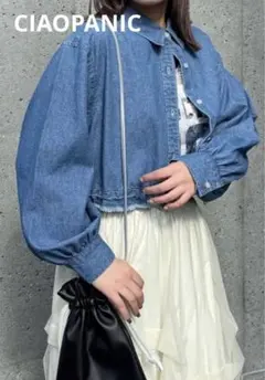 【新品】チャオパニック ショート丈ドロストアソートシャツ ブルー デニム