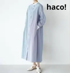 haco! ハコ! ストライプ 長袖ワンピース ブルー系