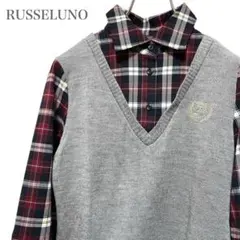 RUSSELUNO レディースゴルフウェア ベスト チェック柄 長袖 シャツ